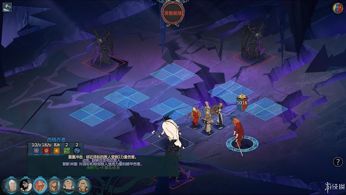 這場戰鬥沒有什麼難度,敵方基本上都是血防較低的弓兵,將你的角色儘量想前靠近,巨人現在基本上可以一擊砍到一個。弓兵會使用箭雨,有點類似石人的潛伏者,在道路上預設一個阻礙格子,你的角色經過後會受到傷害並停止行動。