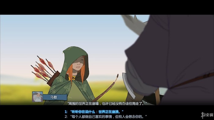 在營地介面和尼德對話,她是個弓箭手,此時她端了一碗煎蛋放在你手裡,這是家族食譜,她告訴你;你在嘗過了之後讚美了它,雖然只是簡單的食物,但是讓她感到了安心。