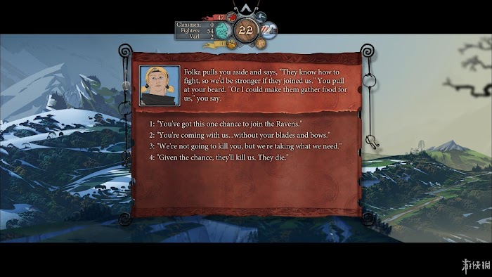 除去戰棋之外,遊戲還是一段艱難旅程的故事,作為首領,你要顧及整只隊伍的存亡,其中最直面的問題就是一路上的糧草消耗,在遊戲中玩家需要時刻保證自己有足夠的餘糧來支撐未走完的路,為了避免糧食耗盡,你甚至需要打開那些本不歡迎你的村落的大門,用戰鬥去獲得購買糧食的權利。