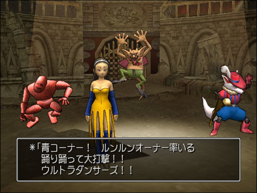 戰術: 終於有點好玩了. 第一回合很簡單, 第二回合會有點艱苦. 對方HP很高, 而且防禦也不低. 所以作好打持久戰的準備. 最後一會合的妖怪會用讓你的戰鬥員失去戰鬥能裡的舞蹈, 比較討厭. 如果你的隊伍裡有兩個Killing machines[キラーマシン],再搭配一個Talos[アポロン],那麼這個陣容將能比較從容過關. 過關沒獎勵, 不過那個穿的花枝招展的大叔承諾下次給個大獎.