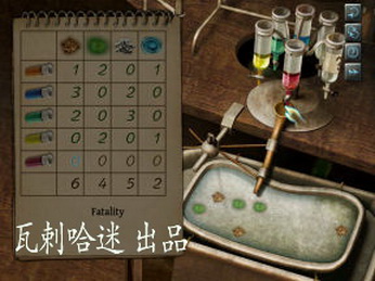 查看桌子前地上的燒瓶,瓶頸有血,有化學成分的味道。