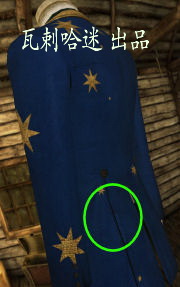 房間右邊角落的屏風。賊藏在屏風後直到房間裡只剩他一人。