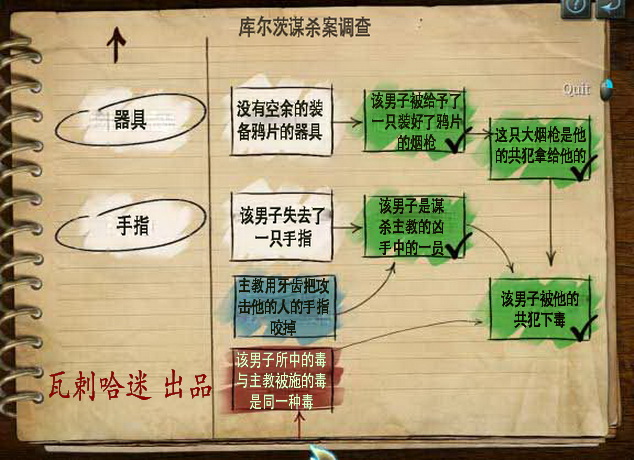推論板:華生做了張推理板,注明犯罪並非為了得到東西。
