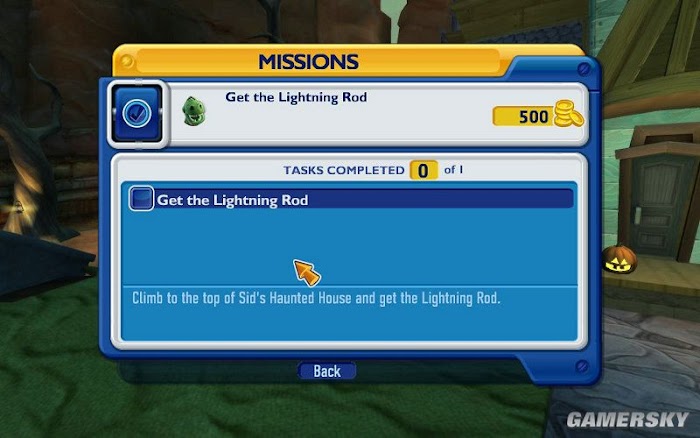 來到鬼屋,先和門口的恐龍說話接受第一個任務。拿到LIGHTING ROD