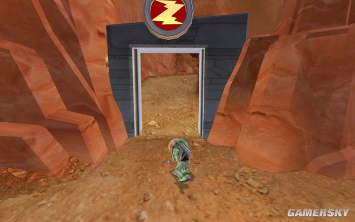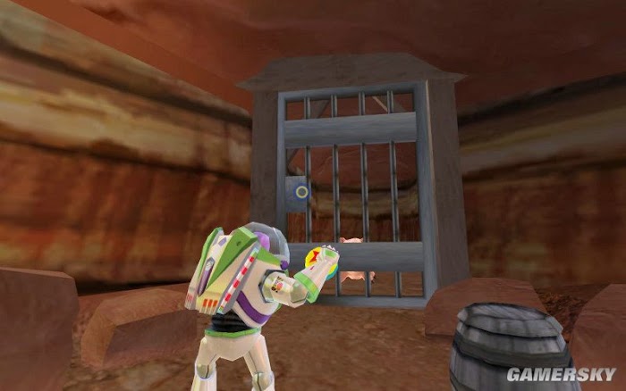 一路前進到如下的位置。這裡就是讓你熟悉一下攻擊。首先你需要按E進入攻擊模式;然後使用滑鼠移動調整目標,一旦進入準確命中範圍之時,准心會自動擴大;此時你就可以按滑鼠左鍵進行攻擊了。彈藥則是你右上角的紅星玩具球。