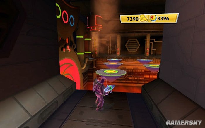 一路繼續向前,注意沿路的移動平臺。注意時機小心連跳過去