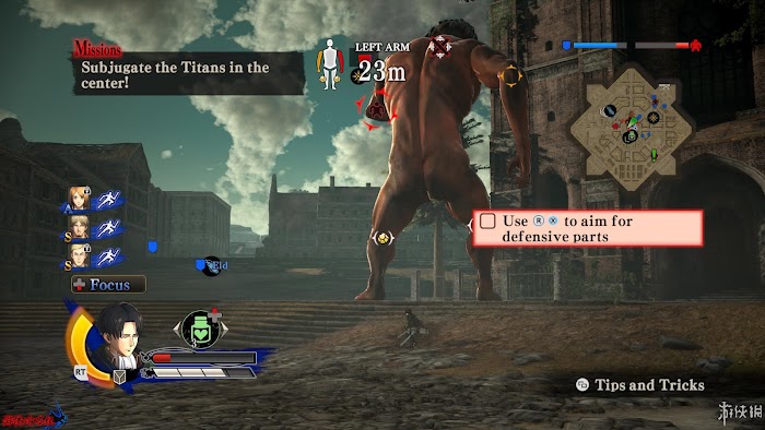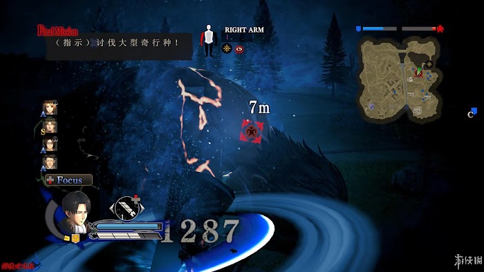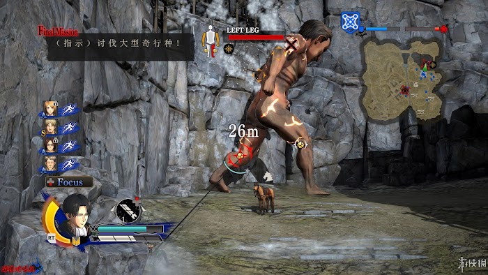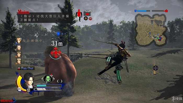 任務1:討伐中型巨人。在地土左下角出現的中型巨人,前往討伐。