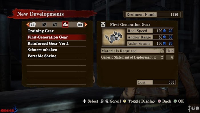 具有[劍刃標記]的NPC處,前往可以[New Development|研發]、[Equipment Modification|裝備改良]、[Cash In|變賣]、[Fortify|強化]。新[研發]的裝備可以直接使用,[裝備改良]則是利用材料對裝備的升級,[變賣]可以將已有裝備賣出,價格較低,十分不推薦。[強化]則是利用其它不需要的裝備作為材料,強化裝備,可以在下方查看強化結果。