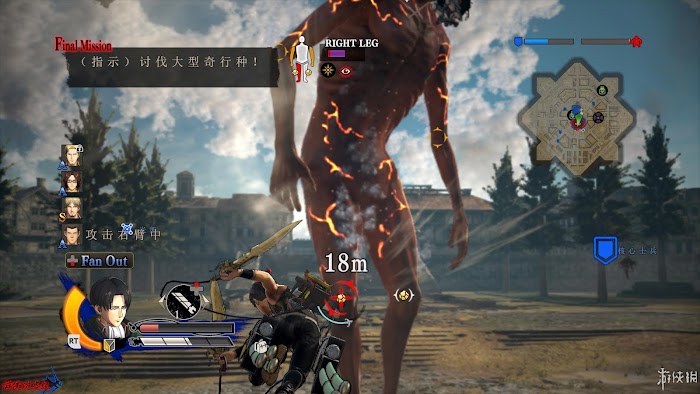 最終任務:討伐女巨人。對女巨人施加多次攻擊可以使其昏厥,此時可以發動強力的後續攻擊。