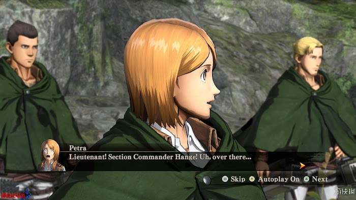 任務2:前往目標。迷之巨人攻擊5個巨人後會出現提示。到目標地點後加入阿爾敏的小隊,隊裡還有[Conny Springer|康尼·斯普林格]。