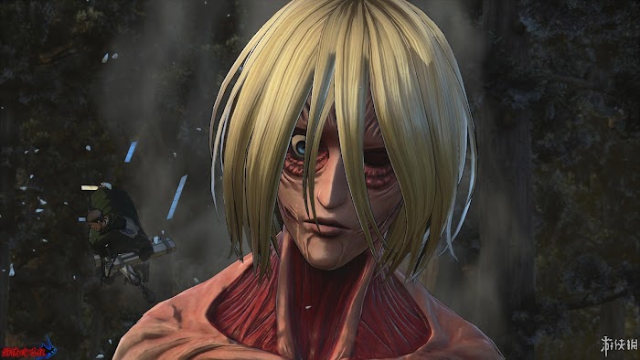 劇情3:女巨人被攻擊下肢後,暫時靠在樹上保護住自己的後頸。儘管如此利威爾部隊憑藉豐富的作戰經驗,還是想辦法令其放下了手臂,就在最後準備給其致命一擊的時候卻深陷陷阱之中。女巨人突然的反擊令幾位士兵猝不及防,紛紛折戟喪命。艾倫大怒,變身巨人準備與之大怒。