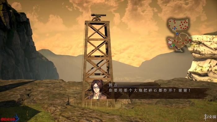 任務2:使用加農炮炸開碎石。期間可以在山谷間招到很多同伴。