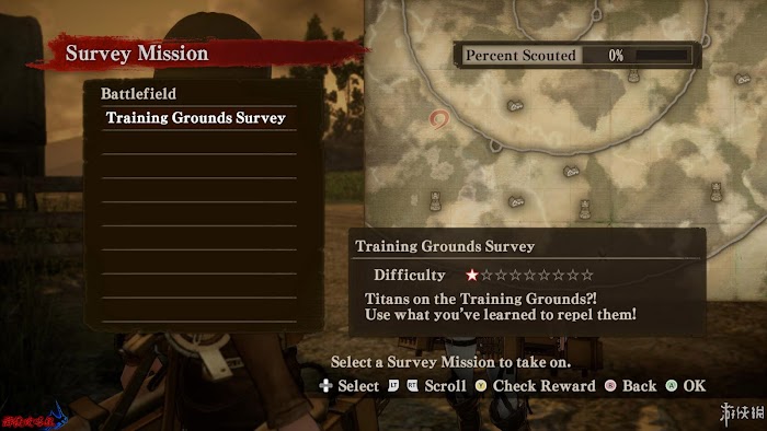 任務1:討伐小型奇行種。發現了攻擊其他巨人的迷之巨人,三笠決定跟著這個迷之巨人,上來不要殺任何巨人,把邊上的巨人都引誘到迷之巨人附近,之後也跟著迷之巨人時刻關注特殊任務完成情況。