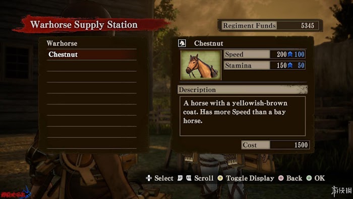 [戰馬]屬性:[Speed|速度]、[Stamina|耐力],升級戰馬會增強所有屬性。戰馬在調查模式中可用,是在沒有樹木,建築等環境條件支持下的重要移動手段。耐力在使用衝刺時下降,普通狀態下緩慢恢復。