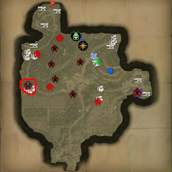 左上角為當前任務目標,[紅色煙霧]觸發的為主要任務,靠近以後觸發劇情;[綠色煙霧]是其他人物發出的求救信號,前往解圍(通常都是擊殺附近的敵人)之後,可以將其收編進自己的臨時小隊,如果進度轉滿之後還沒有營救隊員會死亡。通過[綠色煙霧]任務解救的隊員往往等級比一般路邊上直接招募的高。部分情況出現的紫色煙霧為[緊急請求],需要儘快前往。