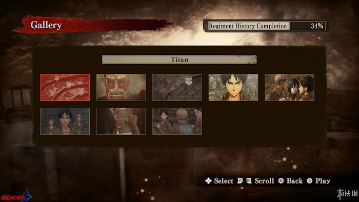 [畫廊]的內容其實就是遊戲的收集要素,可以查看[Public Information|公眾資訊]、[Regiment History|兵團歷史]、[Music Collection|音樂收集]、[Muster Roll|兵團花名冊]、[Equipment Field Guide|裝備指引]、[Titan Field Guide|巨人指引]。