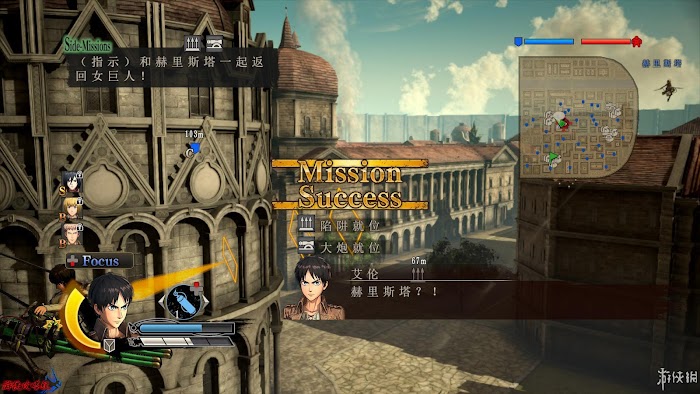 *三笠比較厲害基本不會死,女巨人不用管專注完成副任務就能拖住她的腳步,順便把第二個條件副任務全完成做到,然後討伐25個敵人