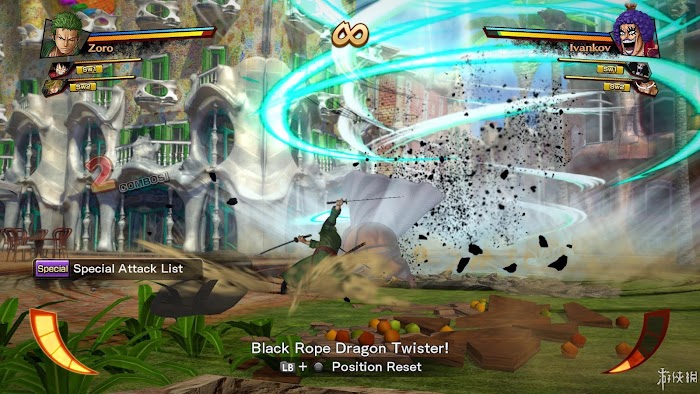 就遊戲中的格鬥部分還算中規中矩。遊戲盡可能的為玩家們還原出了角色會經常使用的技能,路飛經典的橡膠亂打,橡膠火箭炮以至於兩檔狀態,和該狀態下對於其他技能強化都做的非常不錯。在遊戲中路飛以兩年前和修行後分成兩個可用角色,兩年前的前的路飛使用能量條會變成2檔狀態,在該狀態下強化的技能都有蒸汽效果,加上動漫中玩家所熟悉的特殊音效,打擊爽快十足。而修行後路飛會使用武裝霸氣來強化自己的攻擊,使用能量條也會讓其開啟四擋(這也是動漫玩家們所熟悉的路飛最新殺手鐧了),四擋狀態下的象槍殺傷力力十足,自然也是遊戲裡不可或缺的角色技能。只是單從技能來看雖都有不錯的還原,但帶給玩家的視覺衝擊力就比究極風暴4小了很多,想動漫裡一記四檔的象槍,戰斧,摧毀一艘軍艦都不在話下,遊戲裡還是終究表現的“平淡”了些。