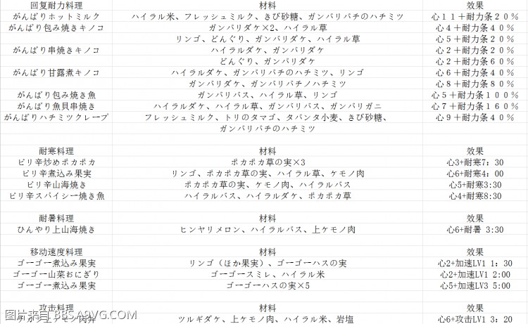 薩爾達傳說 荒野之息 料理配方一覽 17 3 月 2017-03-17 廣告 作者:落絮飄零 來源:a9vg 料理合成方法:在火堆上有口鍋的地方打開菜單,把合成的材料拿在手裡,讓後退出菜單按A扔鍋裡就行,藥也是扔鍋裡