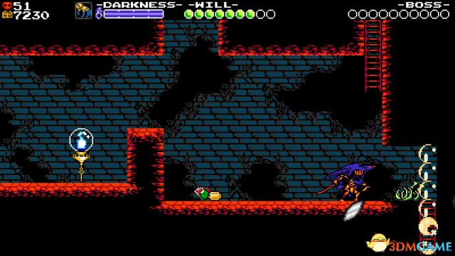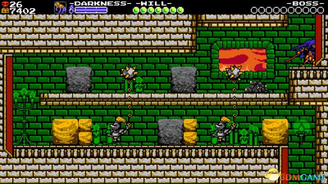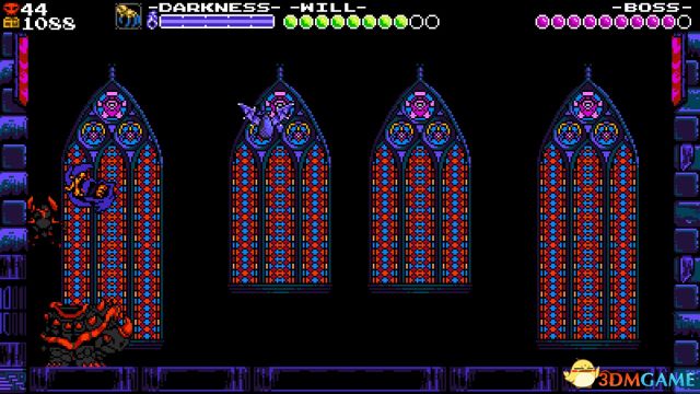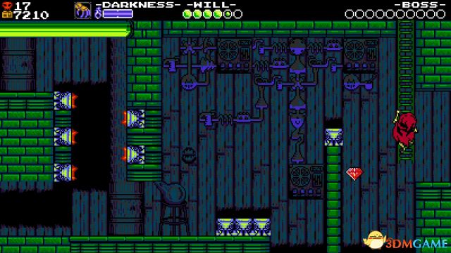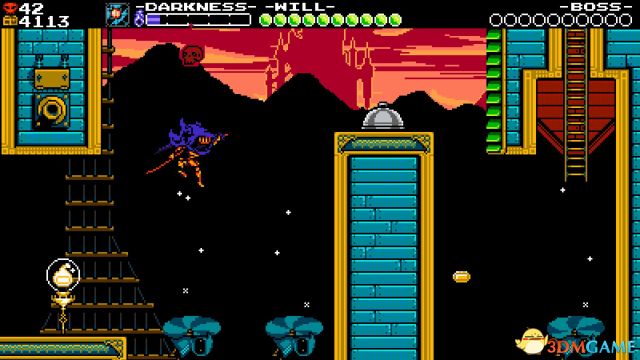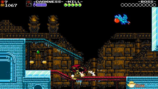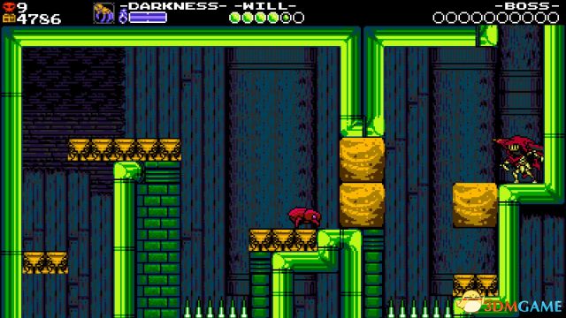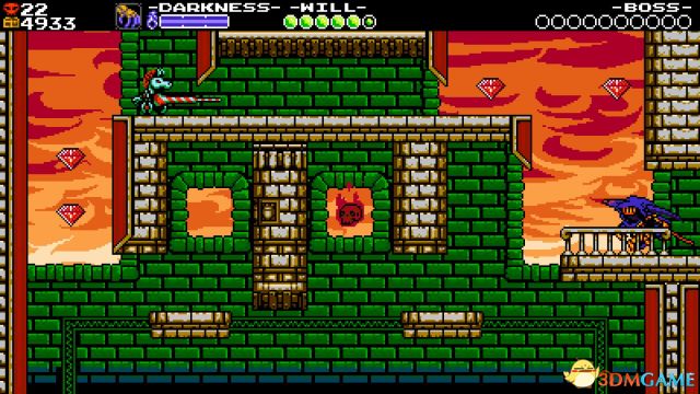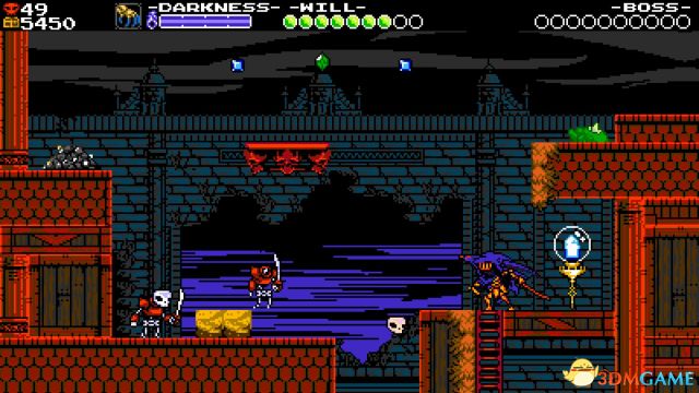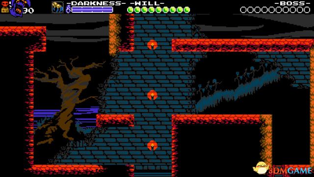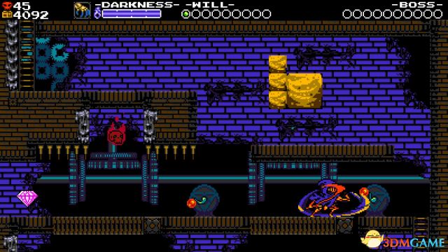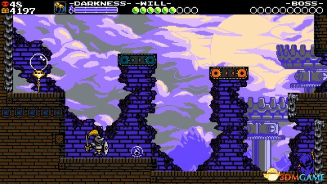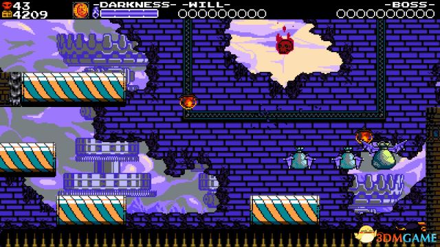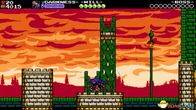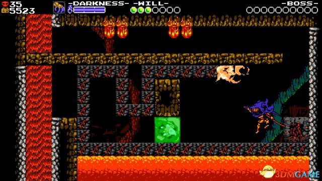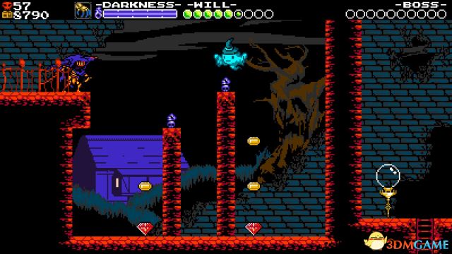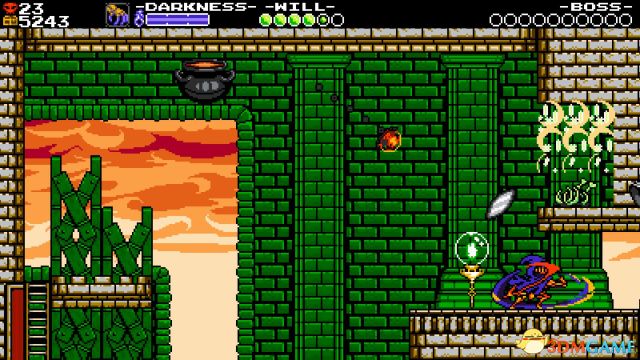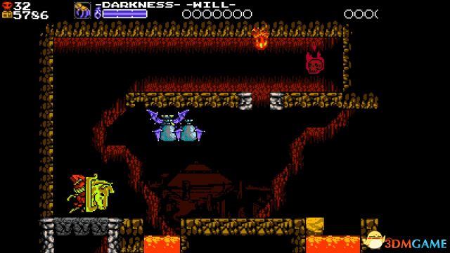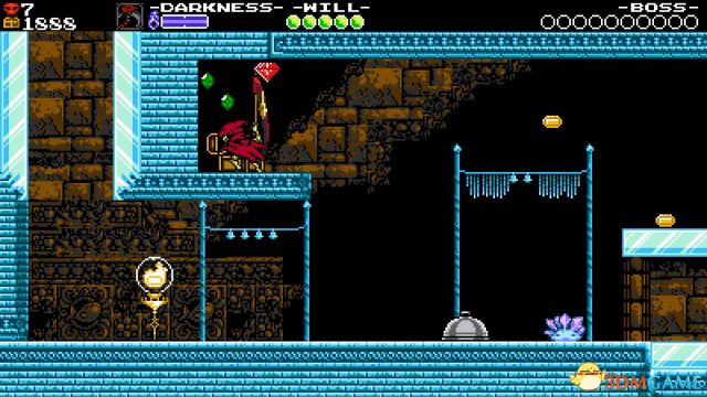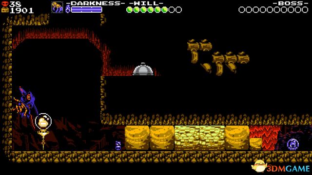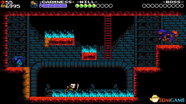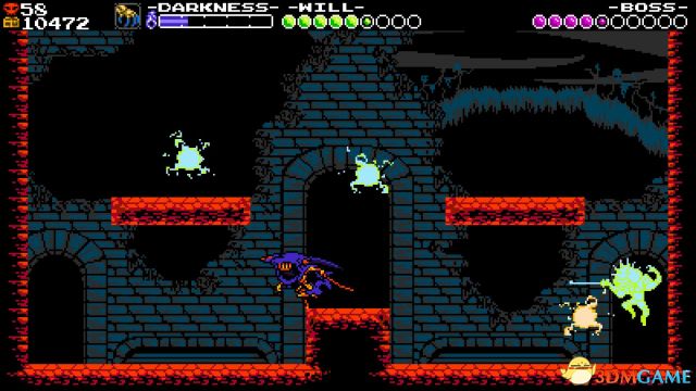 step19.首先跳起來令到下方的磚塊碎裂,並且站在一個懸浮平臺往上升,當其停歇以後,要注意場景四周襲來的磚塊,幽靈騎士可以利用跳躍以及鐮刀拉拽來躲避這些飛來的磚塊。