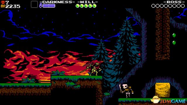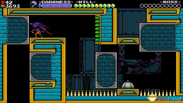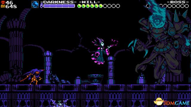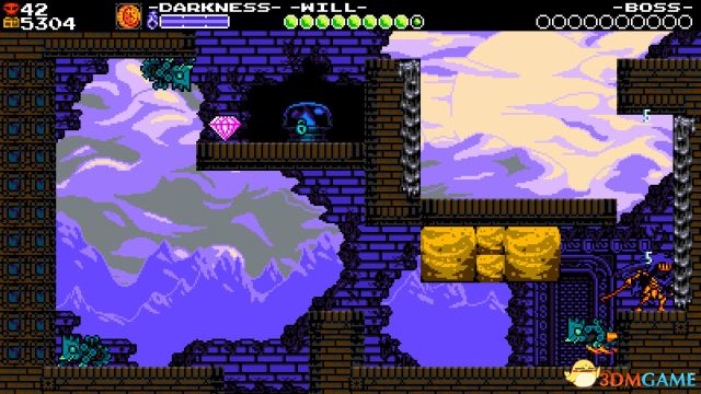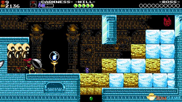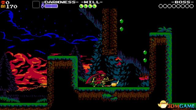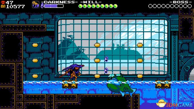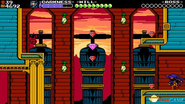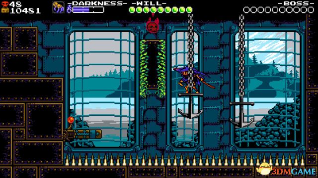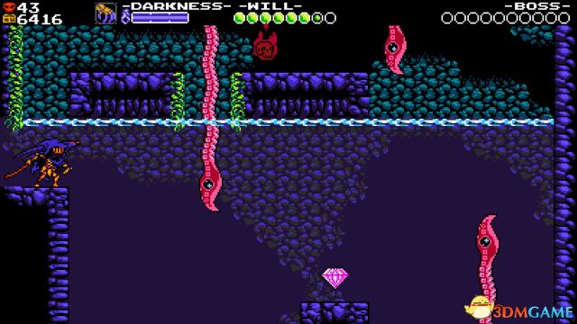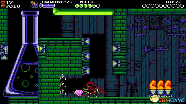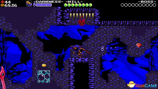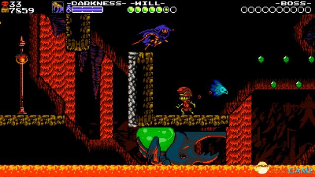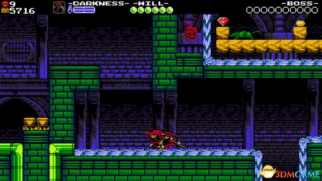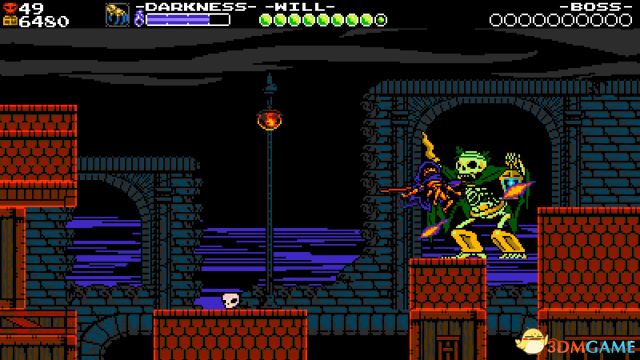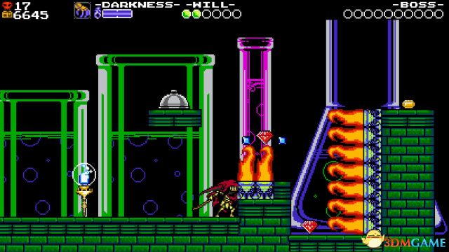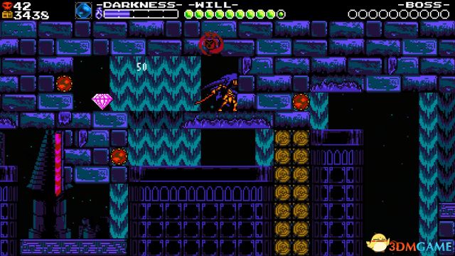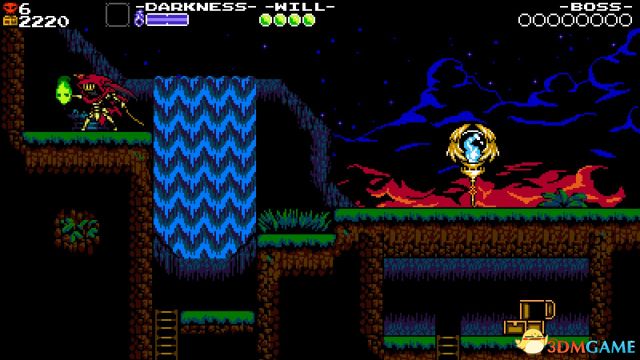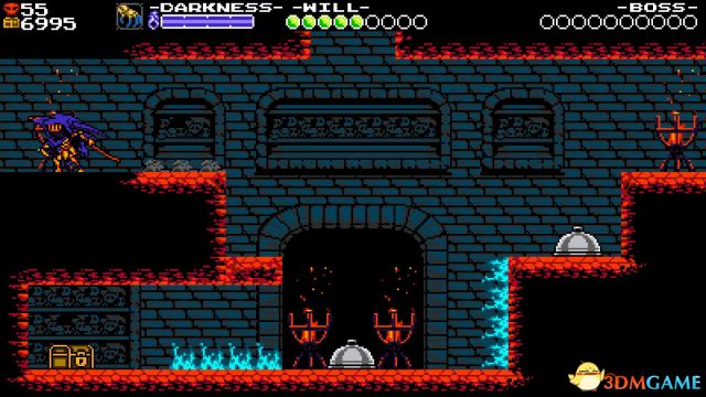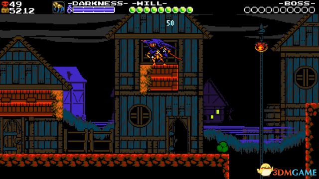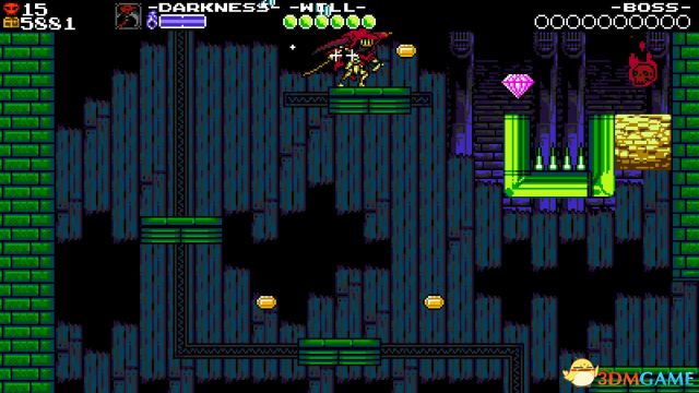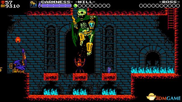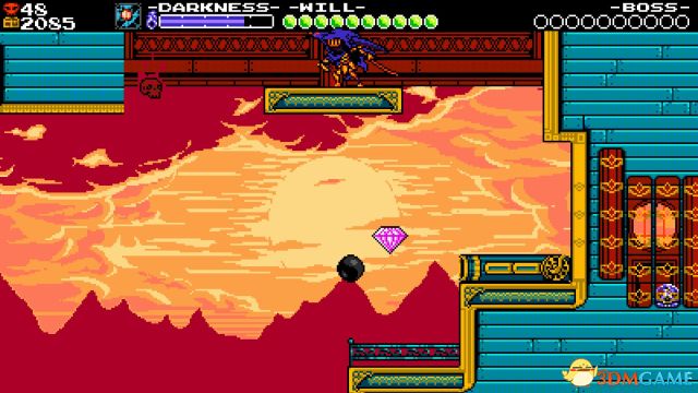 step19.首先跳起來令到下方的磚塊碎裂,並且站在一個懸浮平臺往上升,當其停歇以後,要注意場景四周襲來的磚塊,幽靈騎士可以利用跳躍以及鐮刀拉拽來躲避這些飛來的磚塊。