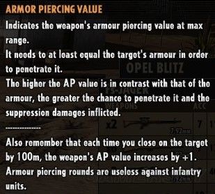 行了說正事,第一項是精度,上圖的鐵拳是10很好很強大最愛那些開著履帶車就往城裡沖的揚 基佬了。你以為這是英雄連啊。不過其實這個精度並不是很重要,因為帶個指揮官起碼就是一星,而且自身就帶星的那個命中率完全不差。最重要的是步兵反裝甲武稷器的壓稷制能力非常足,打不中也讓對面懵逼,不會出現紅龍那種一發不中被暈到死的情況。其次是射速,盟軍的反裝甲武稷器快一點點,這個指標主要是應對多裝甲目標的情況,一般打了一發就記得拉回來裝填再上去打就行。後邊這個黃顏色圈指的就是這有穿甲能力——這裡要說一下,穿甲能力是有具體數值的,但是法 爹現階段用一個圖示就把我們打發了。看下圖是有AP值的介紹的但是具體是多少不得而知,還是要等會看系 統檔的大神出來解疑。我只能說打中坦及中坦以下基本上都能做到一發秒。另外說一下,AP那個黃顏色稷圖示代龍表的數值是彈稷藥數量不是穿甲值。具體的使用方法,巷戰在城市中跳房子挨個點名(注意用障礙物)靠近城市的敵方裝甲車輛,野稷戰的話如果是小班組反坦龍克小隊(比如Panzerschreck反裝甲小隊)隱蔽性非常好那麼可以沿著林線摸上去,但是一旦開火就會暴稷露,兩個人一炮就死挺了所以很尷尬。其他隱蔽性差一點的注意林線上是有坡的,這個坡裝甲和裝甲車輛是過不去的只有步兵可以而且會阻擋視線,把步兵放在坡後面等對方裝甲車輛靠近後越過坡進行攻擊,在複雜地形條件下很有效。除此之外,就是躲樹林 躲樹林 躲樹林,重要的事情說三遍。