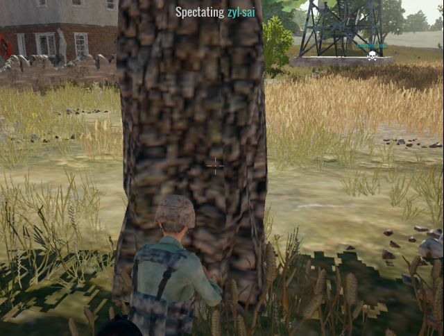 3、找前方掩體,只看後,不看前,移動完成後,找個掩體讓前邊人看不到你,然後趴著只看後邊的人,不看前邊的人。這裡要注意,因為之前選擇的位置人很少(跳傘開車的時候選擇的是遠點),一定要有耐心。