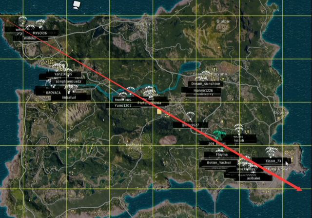 牢記飛行路線是一場遊戲中最重要的地方,因為飛行路線不僅決定隊伍在哪裡發育,也決定了後期跑毒時如何避免與大部分敵人相遇,這裡舉一個例子: