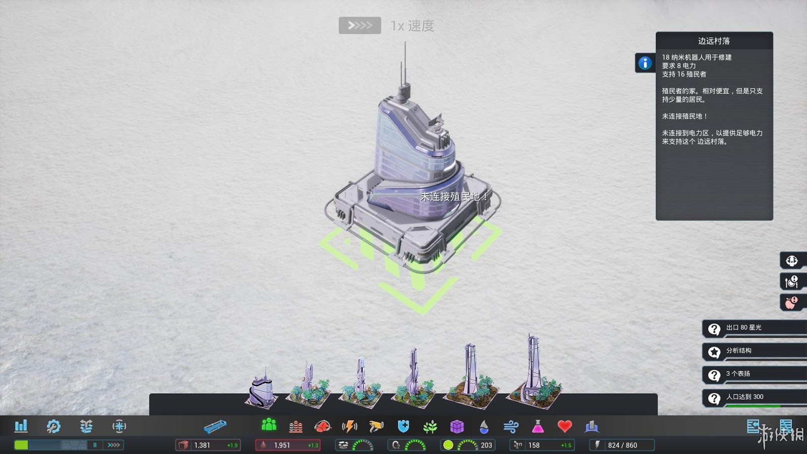 1.建造的時候有一個基本迴圈。添加電力、添加水、添加食物、添加房屋、添加電力。