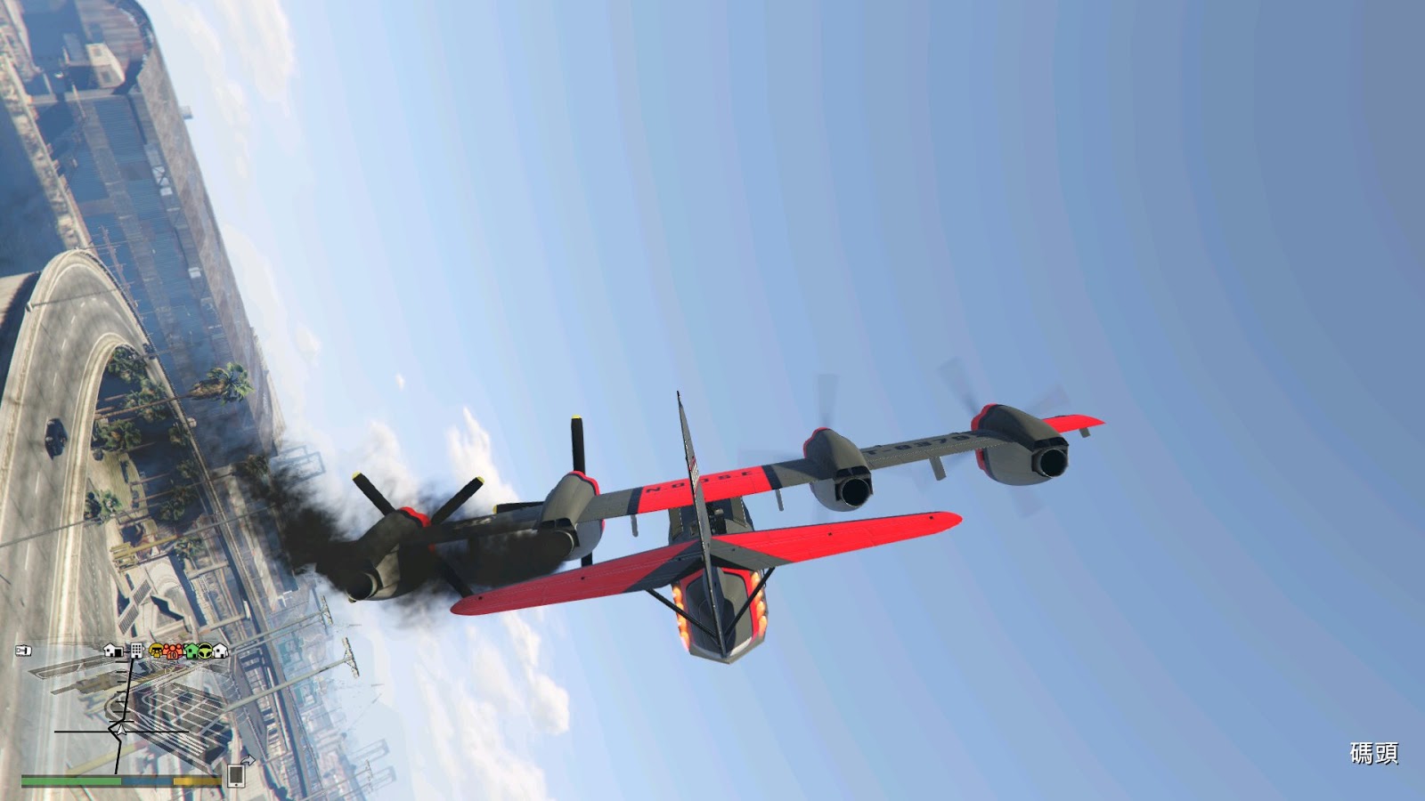 爆了兩個螺旋槳的情況下,使用助推器可以強行起飛,但雙螺旋槳飛行會失控,神奇的是改為垂直飛行模式飛機又平穩了!一點側傾狀況都沒有,不知道是什麼黑科技。還有,此飛機垂直起飛有時候會造成不明原因的引擎超載/損傷
