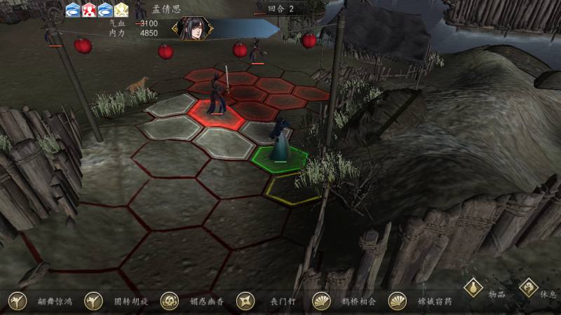 前部分是孟婆要在東渡口打探情報,必須在不傷一個敵人,並且不被任何一個敵人發現的情況下到達藍色的劇情點
