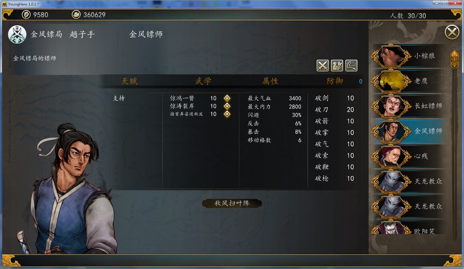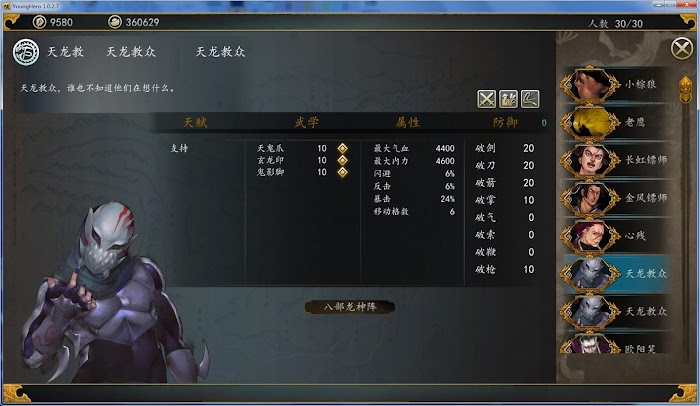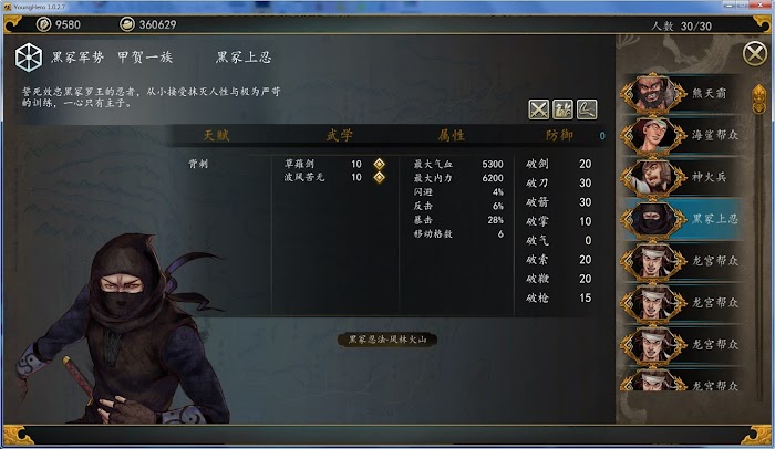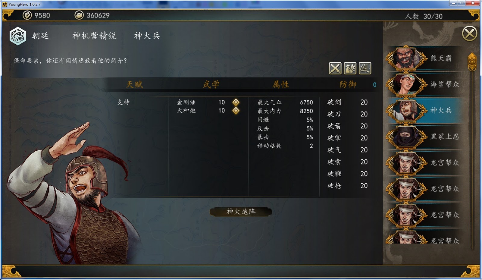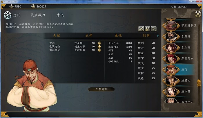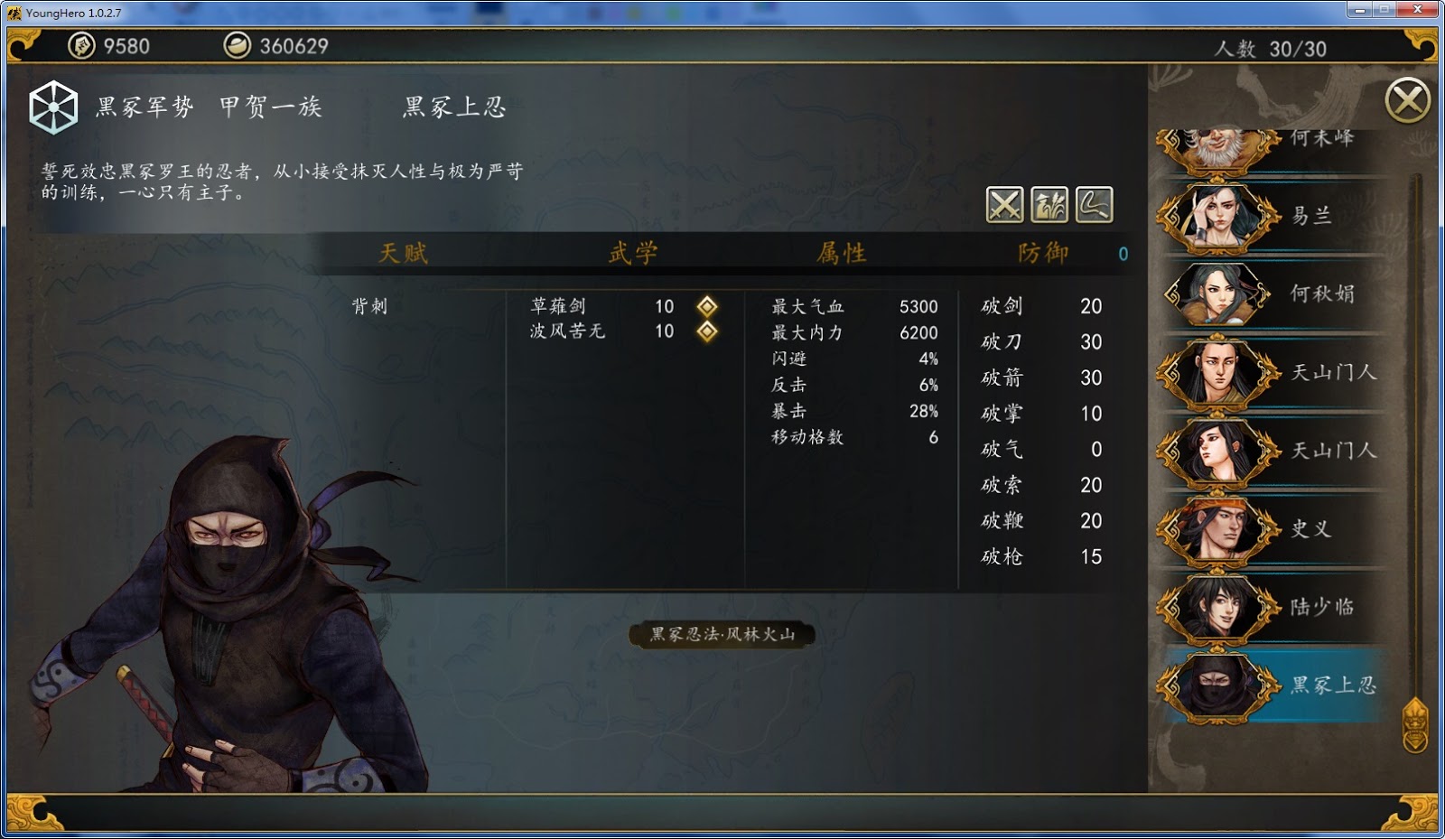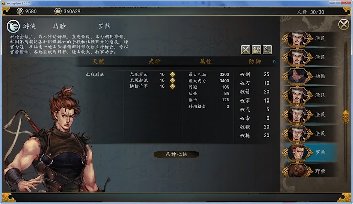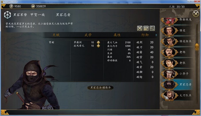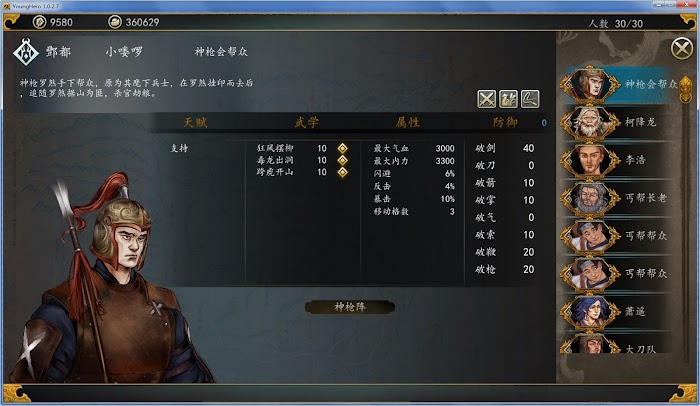 第二批加入的炮灰之神槍會幫眾,滿級風捲殘雲是2格全體AOE帶捉影,考慮到訓練成本,建議賣錢/賣聲望