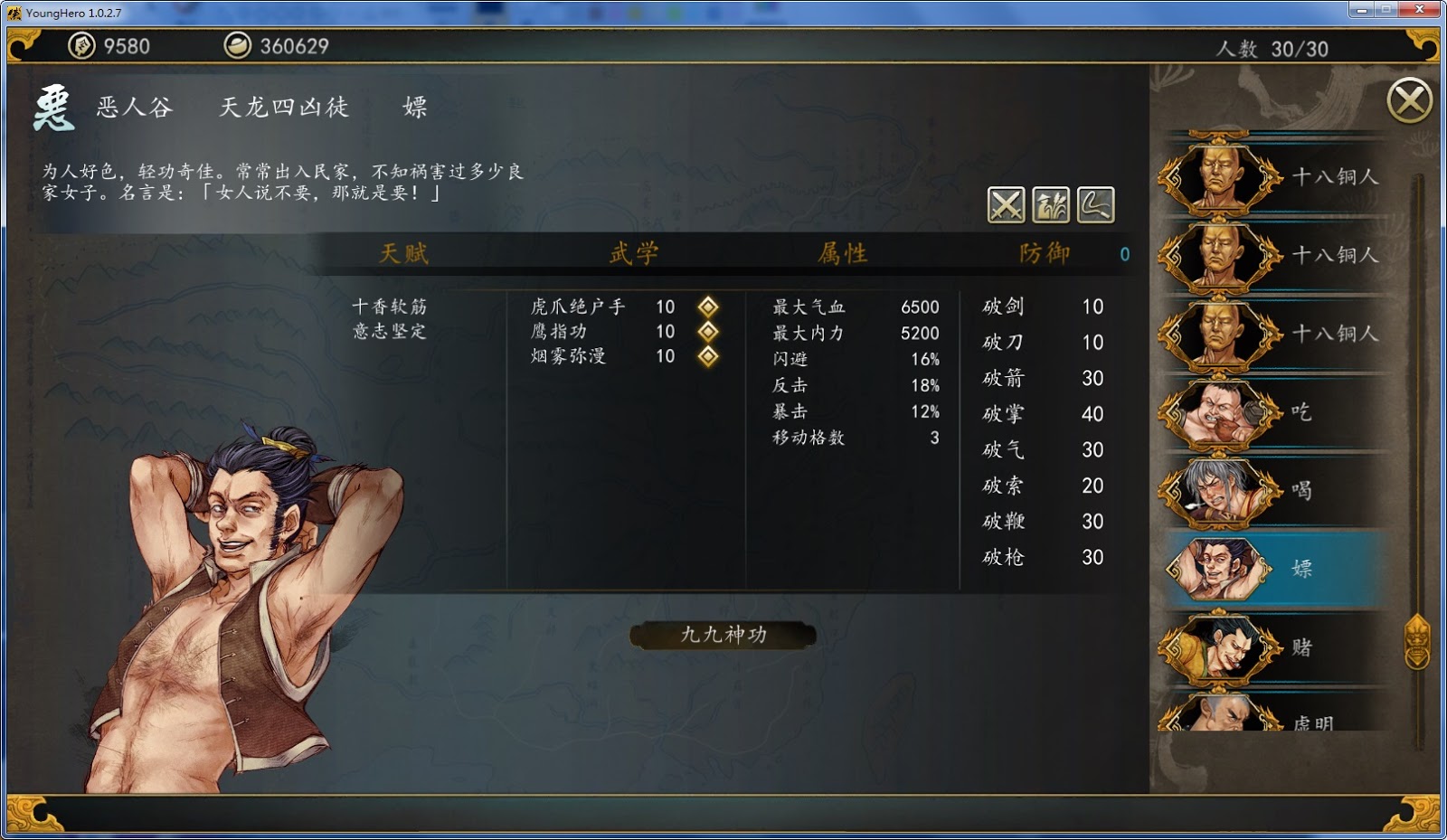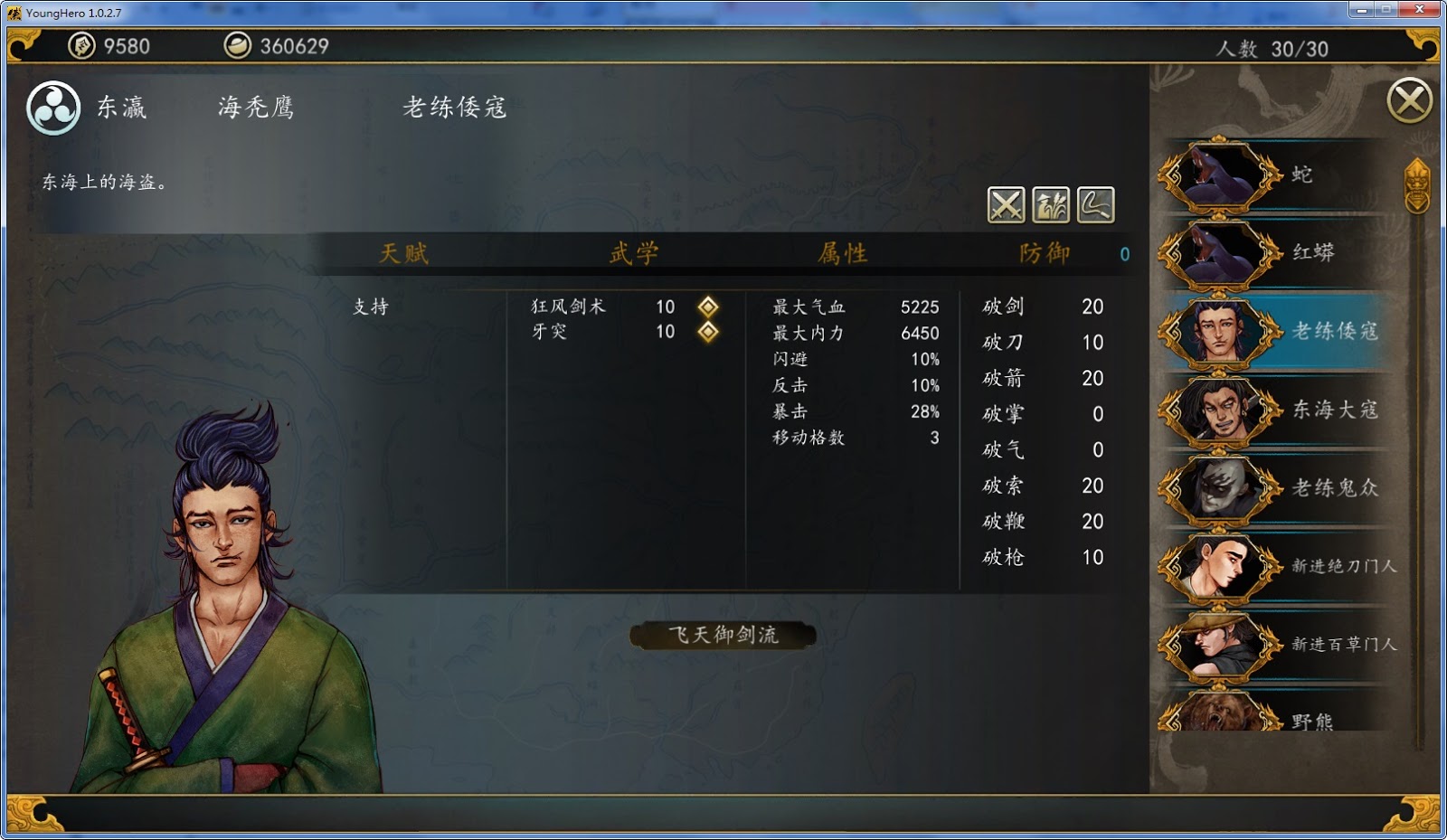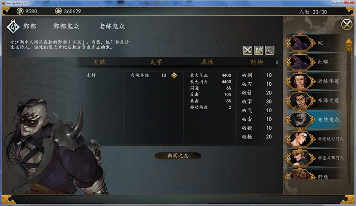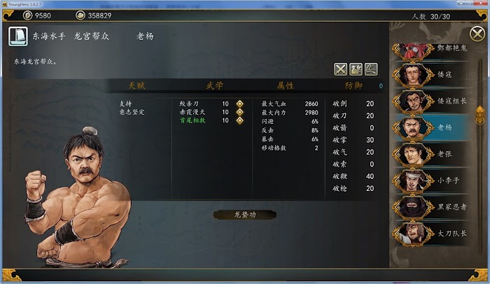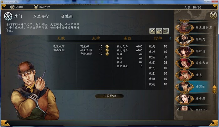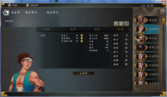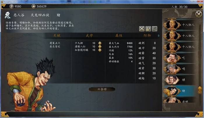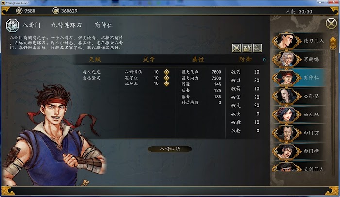 第二批加入的炮灰之神槍會幫眾,滿級風捲殘雲是2格全體AOE帶捉影,考慮到訓練成本,建議賣錢/賣聲望