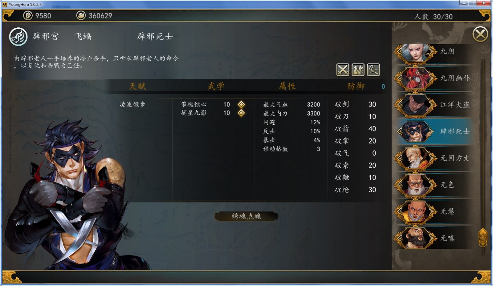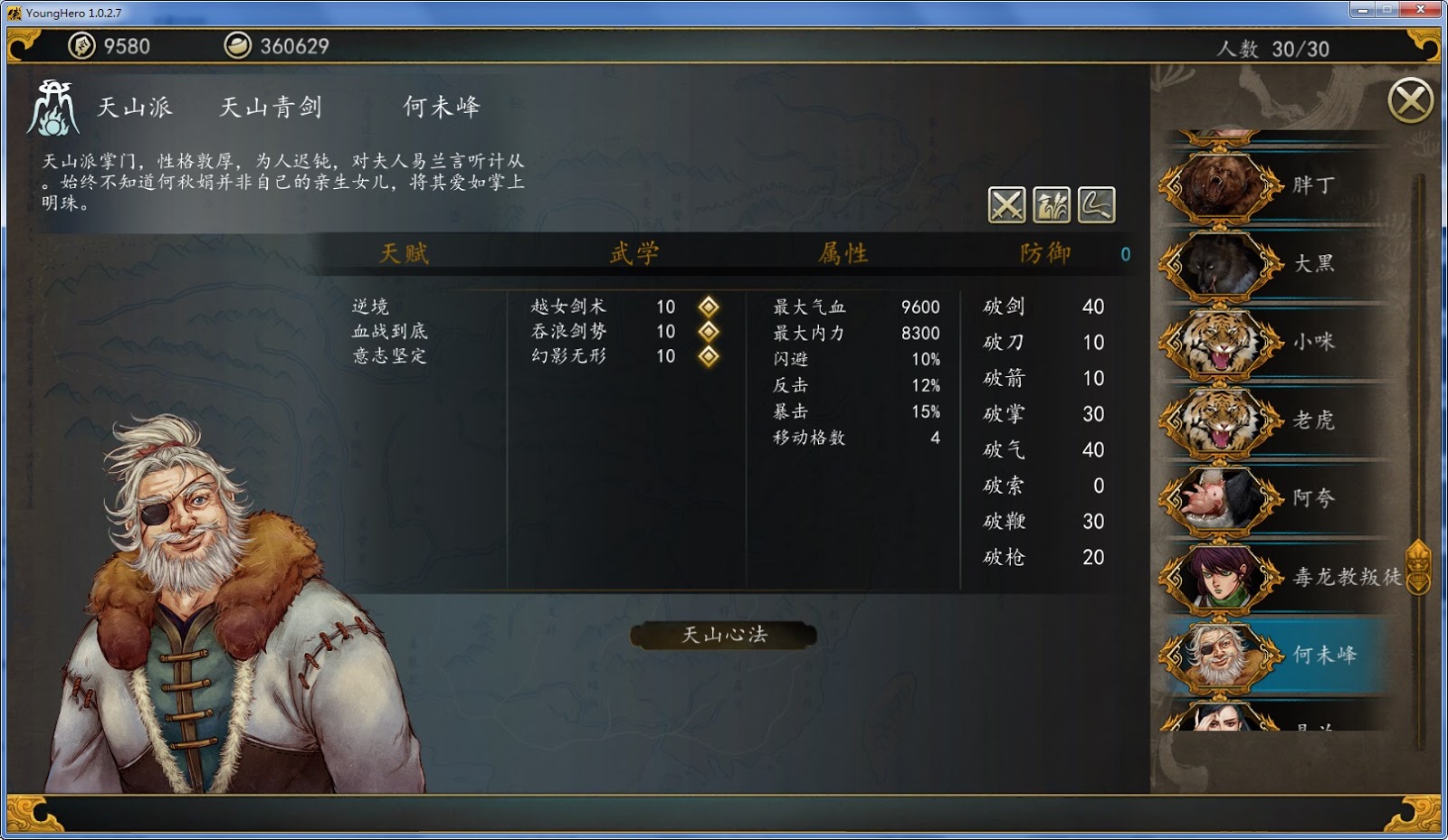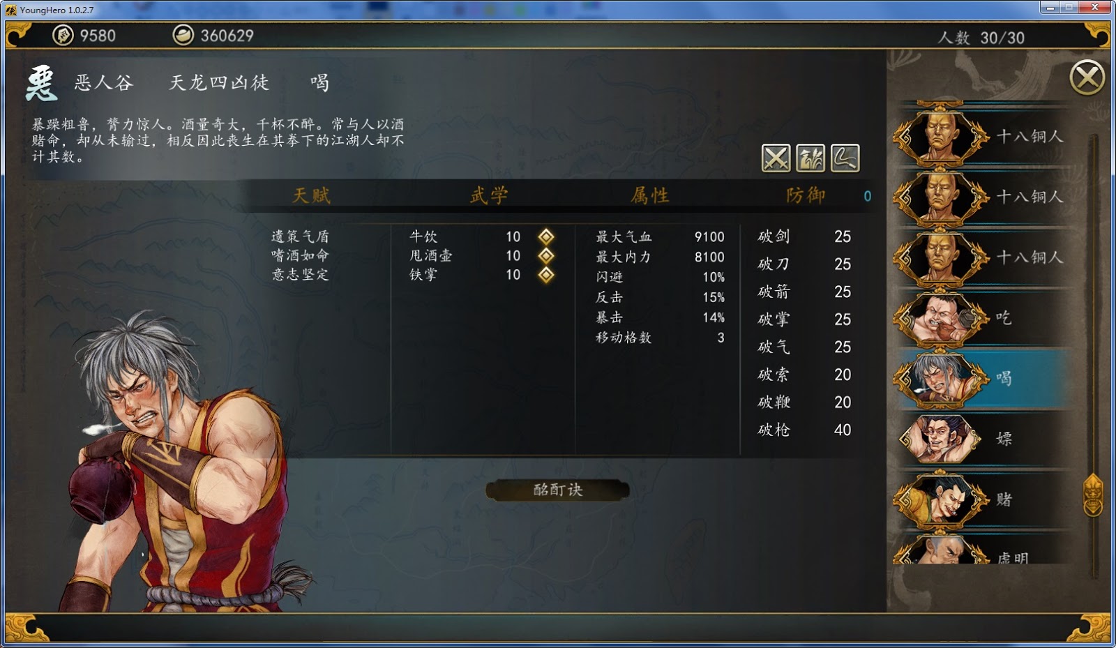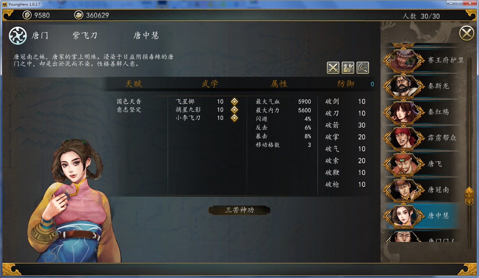 第二批加入的炮灰之神槍會幫眾,滿級風捲殘雲是2格全體AOE帶捉影,考慮到訓練成本,建議賣錢/賣聲望