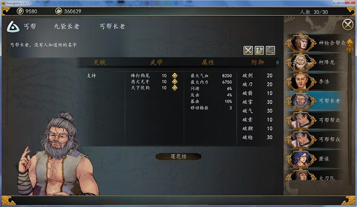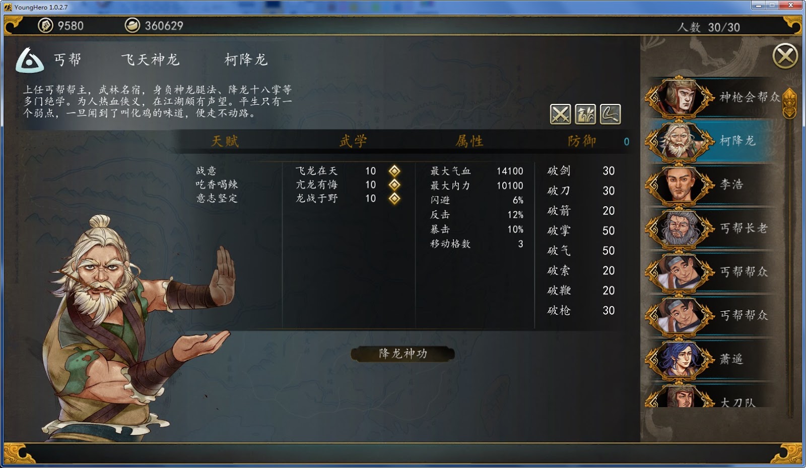 丐幫勢力,幫眾是元嬰功體可以抓個玩玩,柯降龍雖然有元嬰級幫眾,但本人不會霸體,最終戰是所有大掌門之中唯一一個活不過1回合的