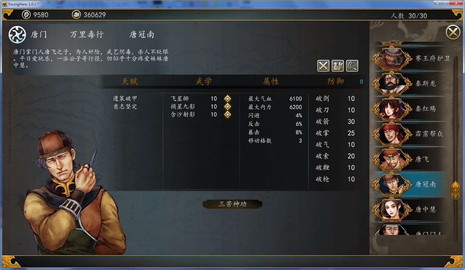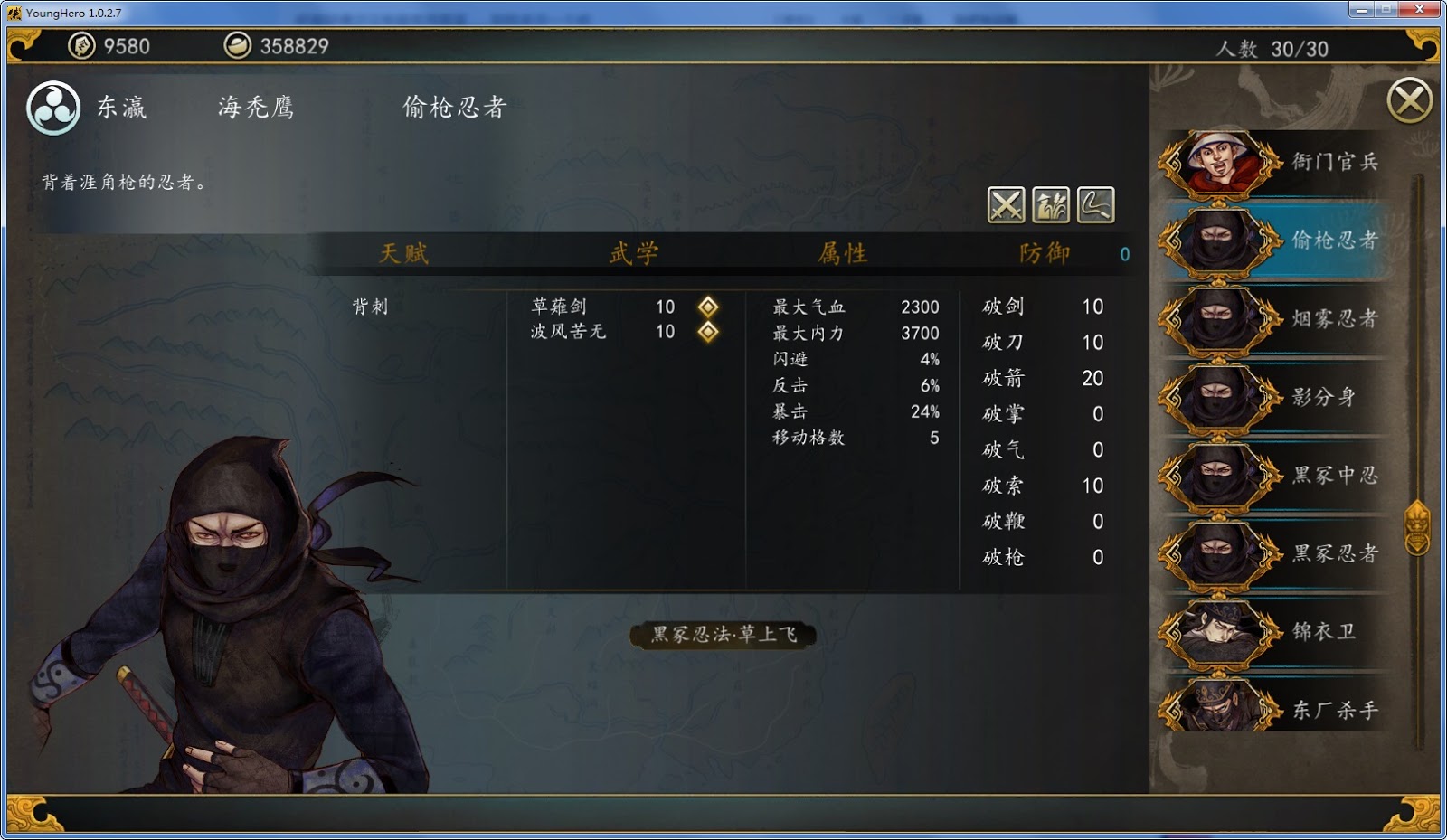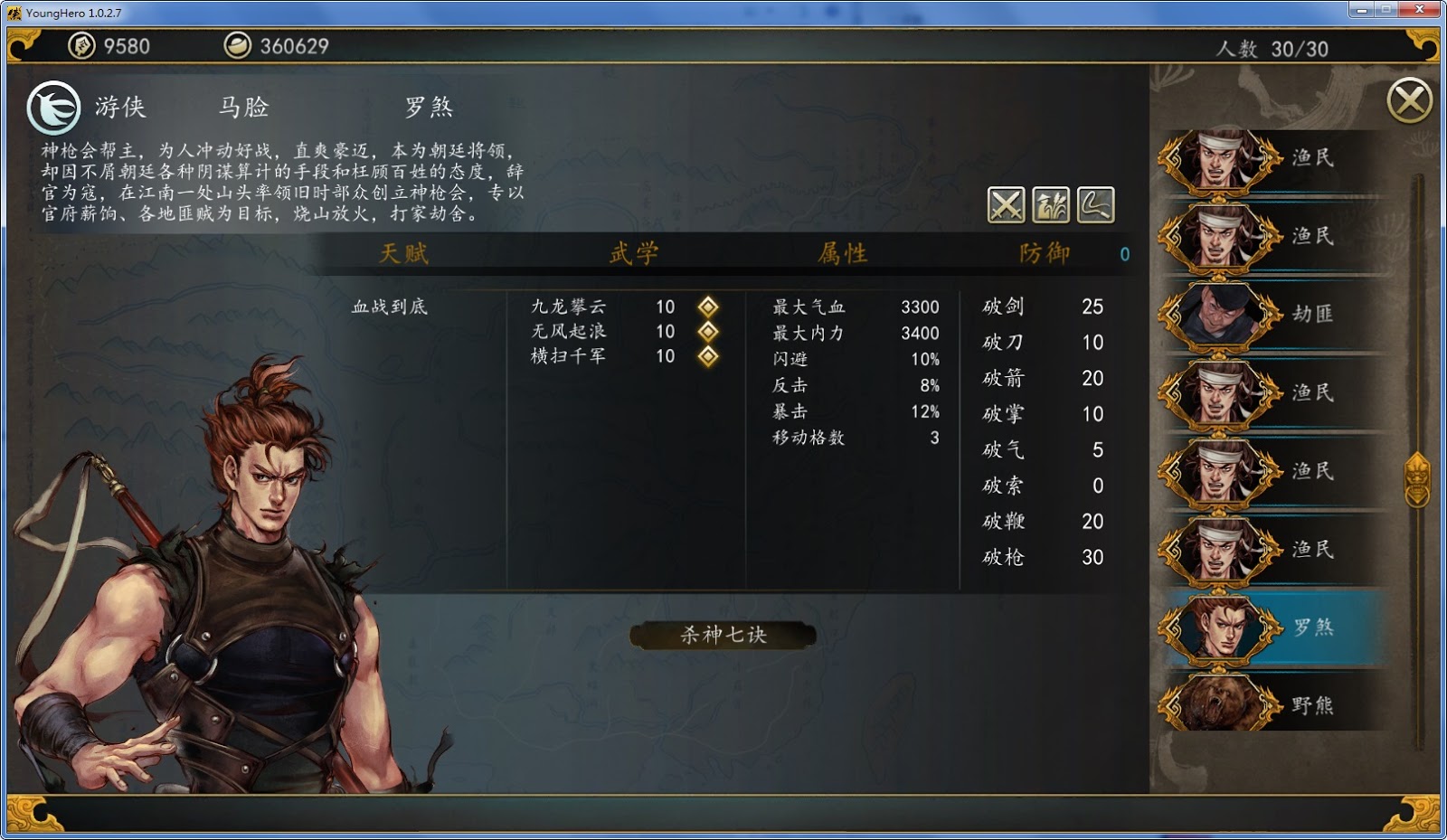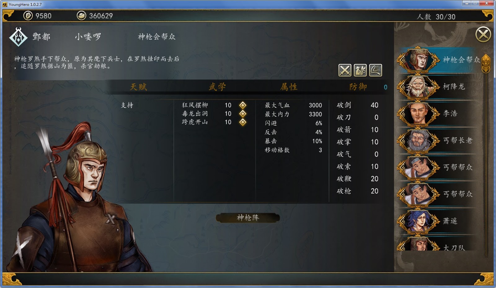 第二批加入的炮灰之神槍會幫眾,滿級風捲殘雲是2格全體AOE帶捉影,考慮到訓練成本,建議賣錢/賣聲望