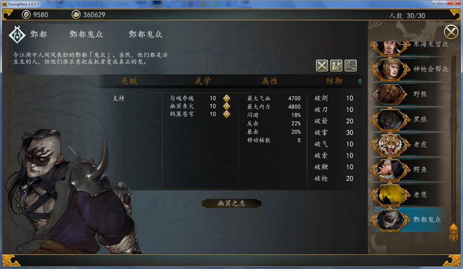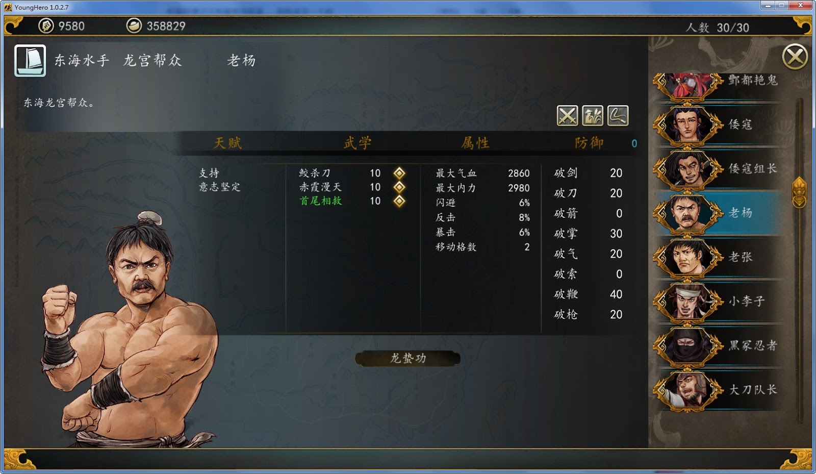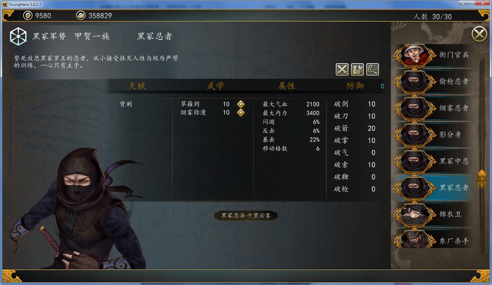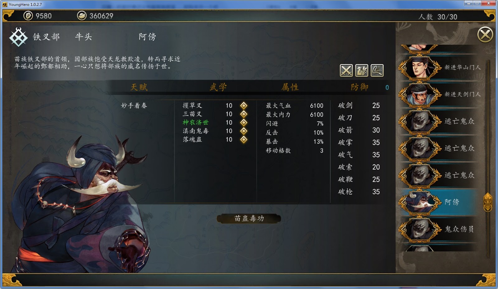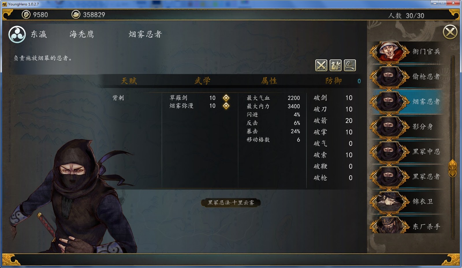 第二批加入的炮灰之神槍會幫眾,滿級風捲殘雲是2格全體AOE帶捉影,考慮到訓練成本,建議賣錢/賣聲望