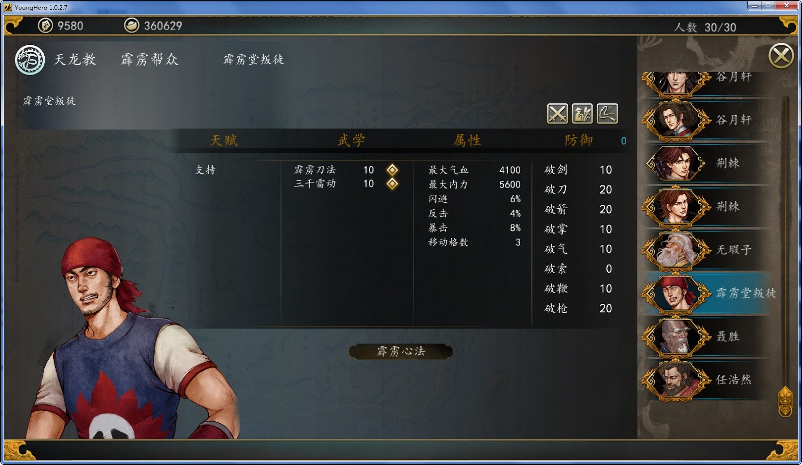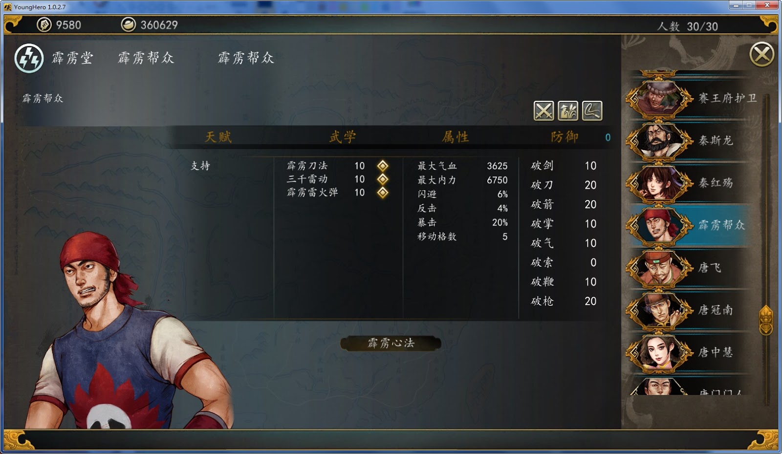 霹靂堂勢力,功體暴擊氣盾,雷火彈傷害可以,不過救霹靂堂的主要價值是霹靂堂那張圖有5個霹靂雷火彈可以撿,打完還再送三個,霹靂幫眾還是賣掉算了