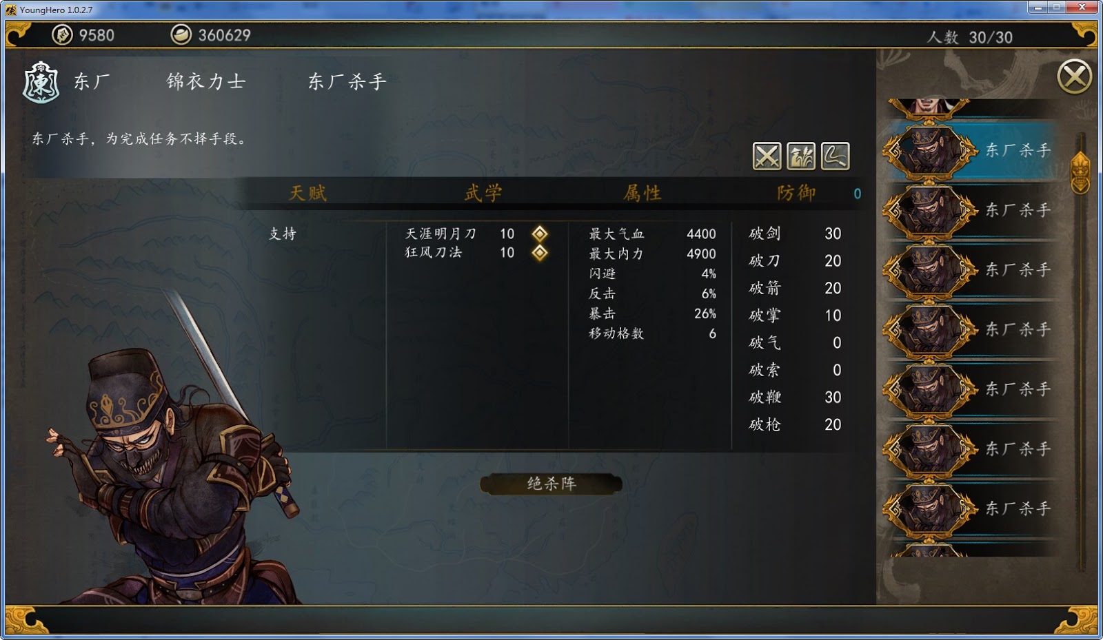 錦衣衛勢力登場,前兩個抓得到算你贏,後四個佔用的是特殊的NPCid位置,在資料庫裡享受專有id待遇