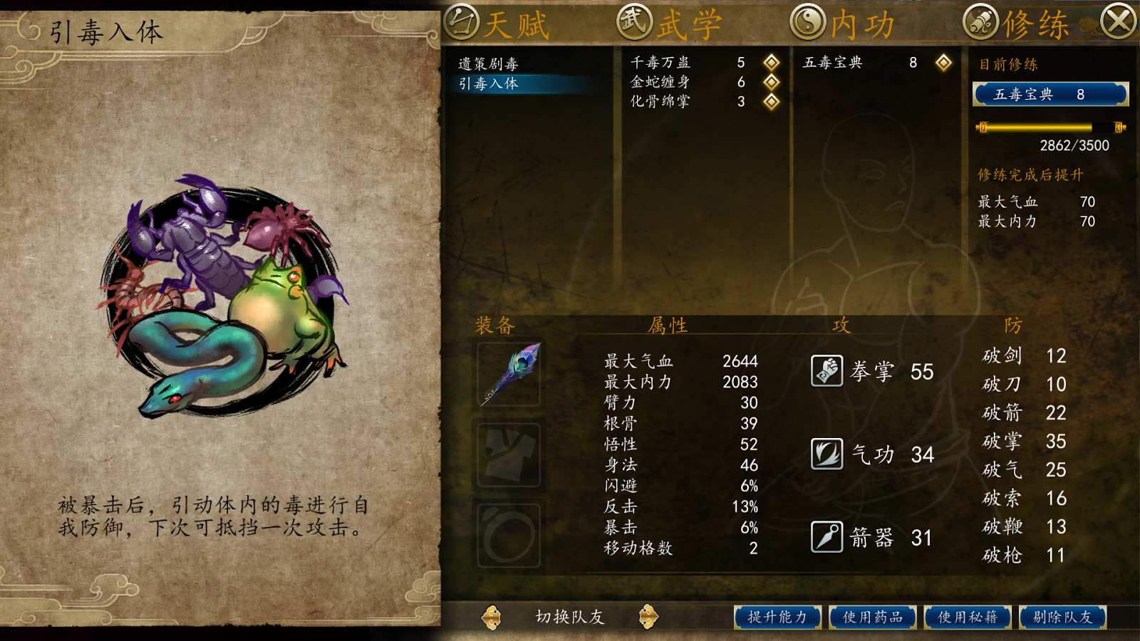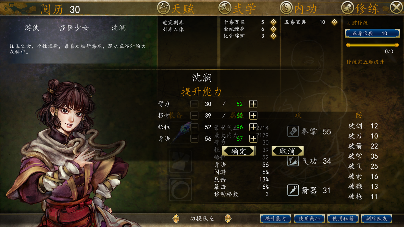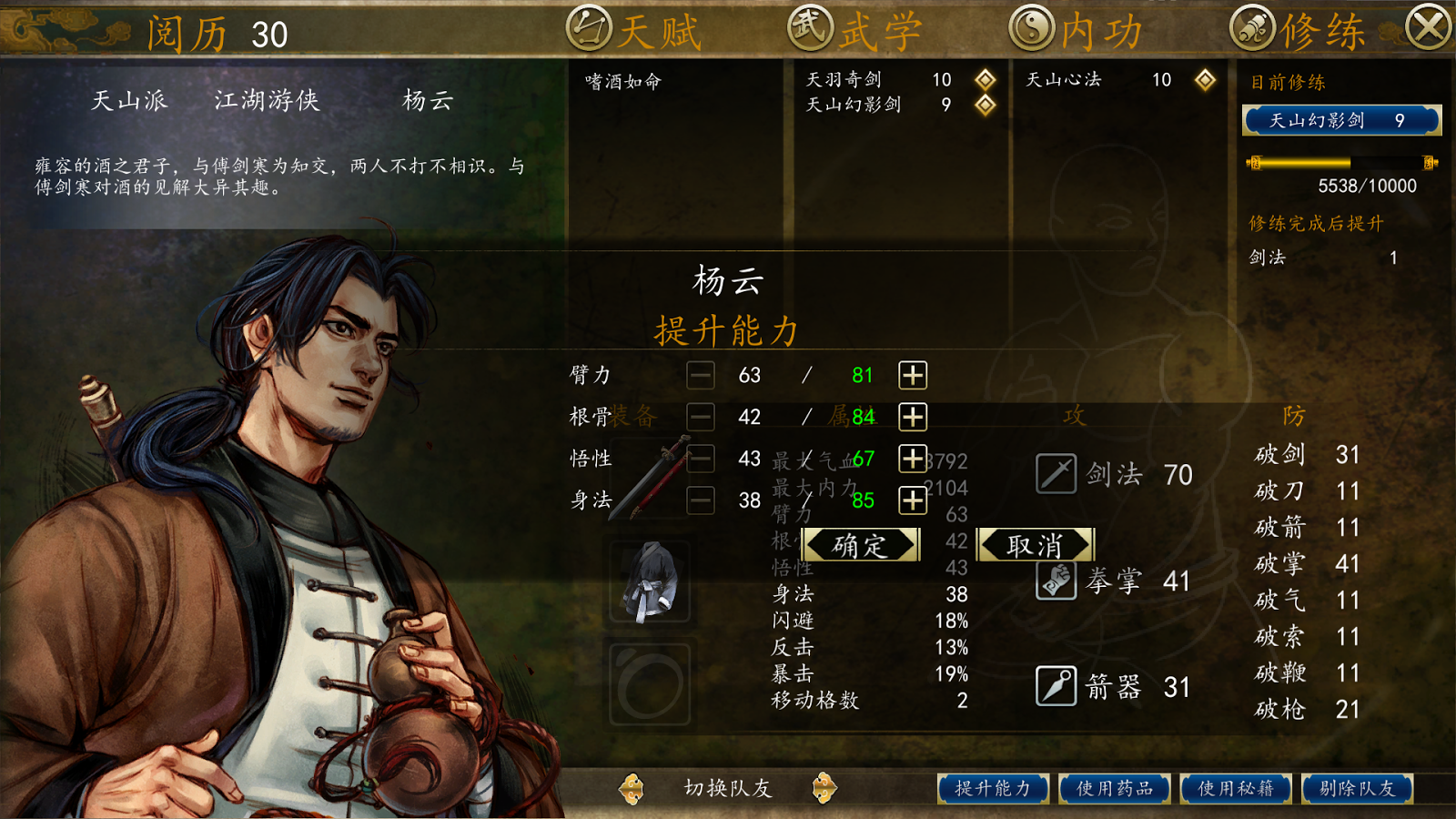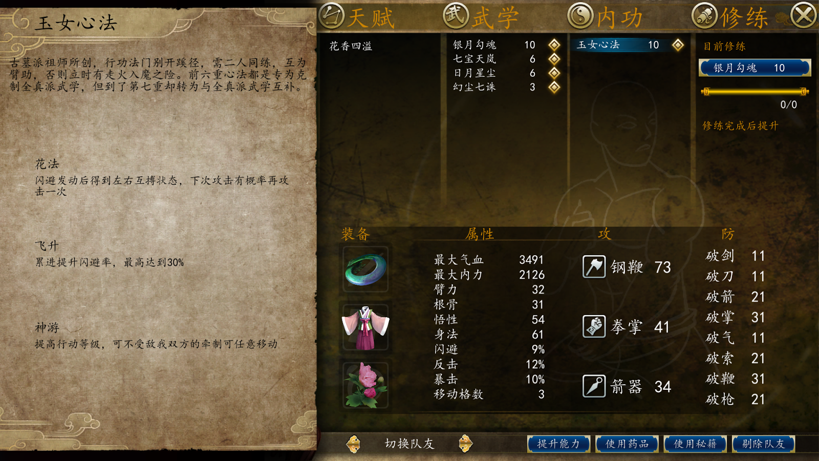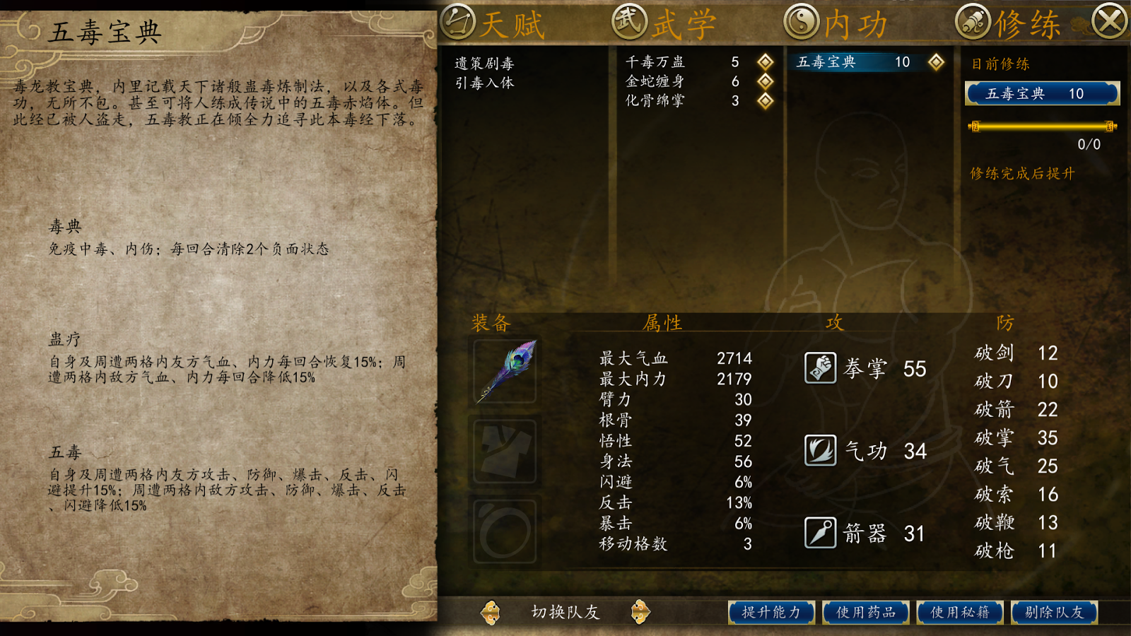 初始刀法挺高的,但是內功,你在逗我? 天賦結合了大師兄和校服,還算符合人物性格。