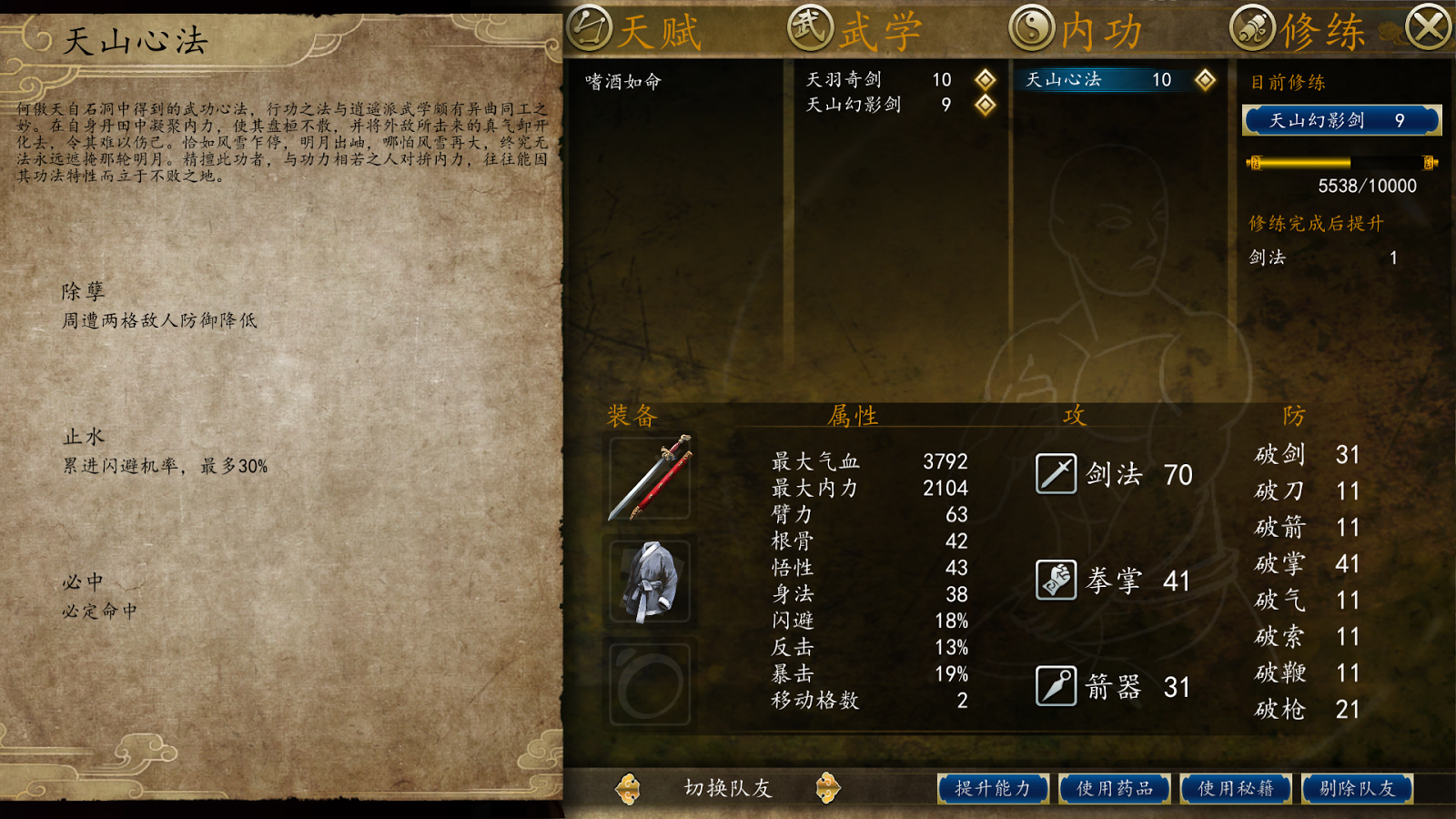初始刀法挺高的,但是內功,你在逗我? 天賦結合了大師兄和校服,還算符合人物性格。