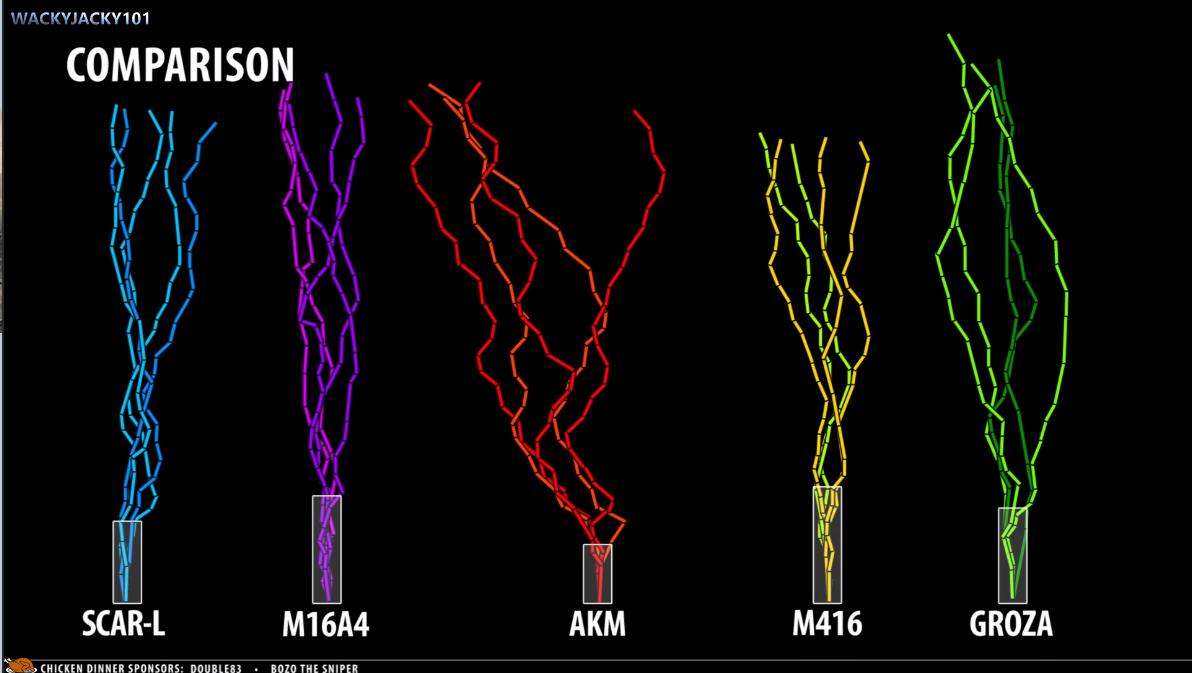 這張圖給我的直觀感受就是,AKM真是異類…其它四把都基本上在同一區域。AKM嚴重偏離…
