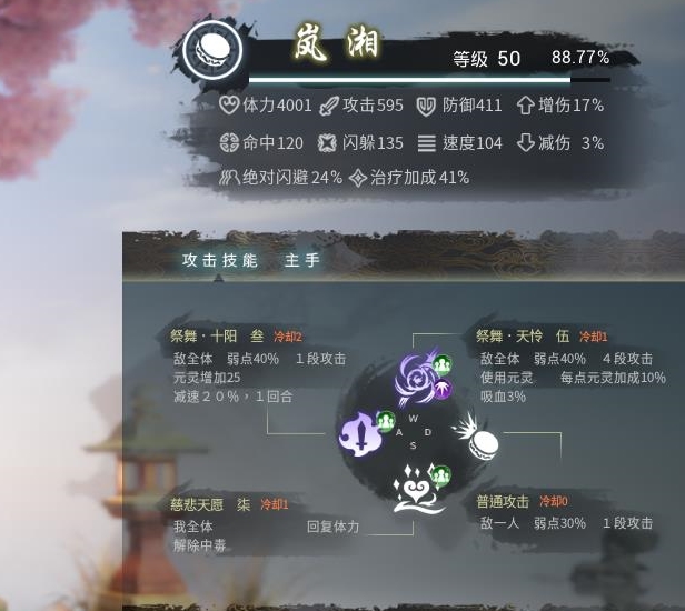 望舒的援護技能升到最高級。嵐湘帶回血。其他人物技能無要求。