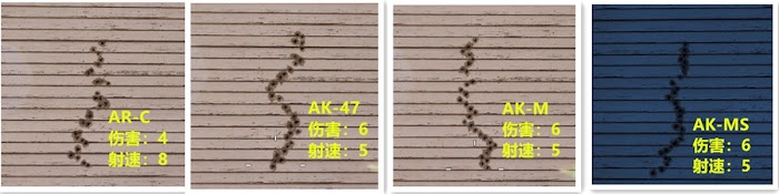 今天的測評內容為自動步槍,分別為:AR-C AK-47 AK-M AK-MS無托版,今天的測試基本上避免了昨天出現的那些人為誤差,本來打算一次性把步槍測評出完的,但由於時間原因以及分類考慮,就先出自動步槍。以下為四種步槍的彈道對比圖