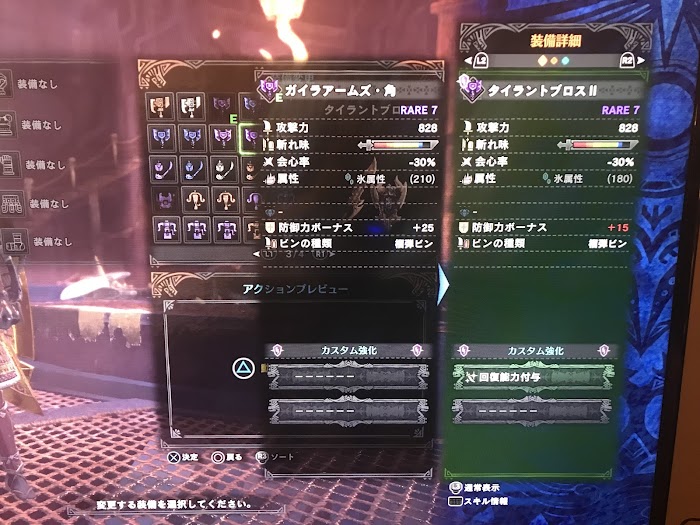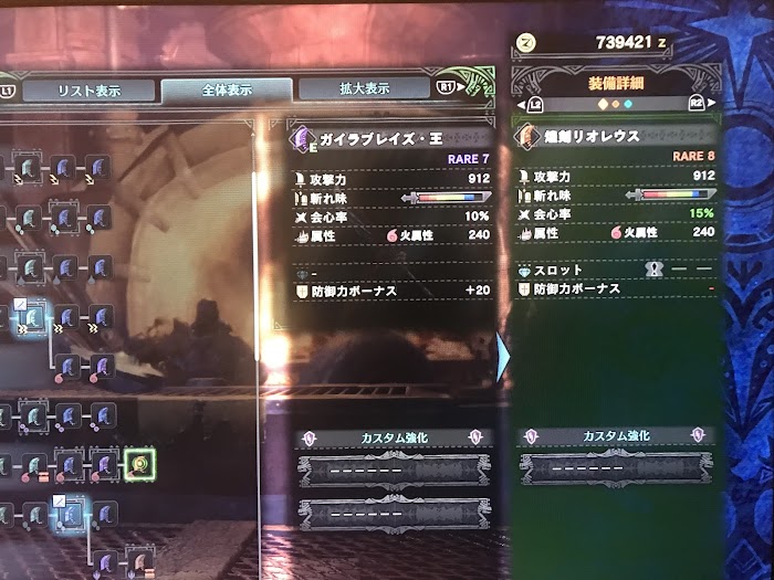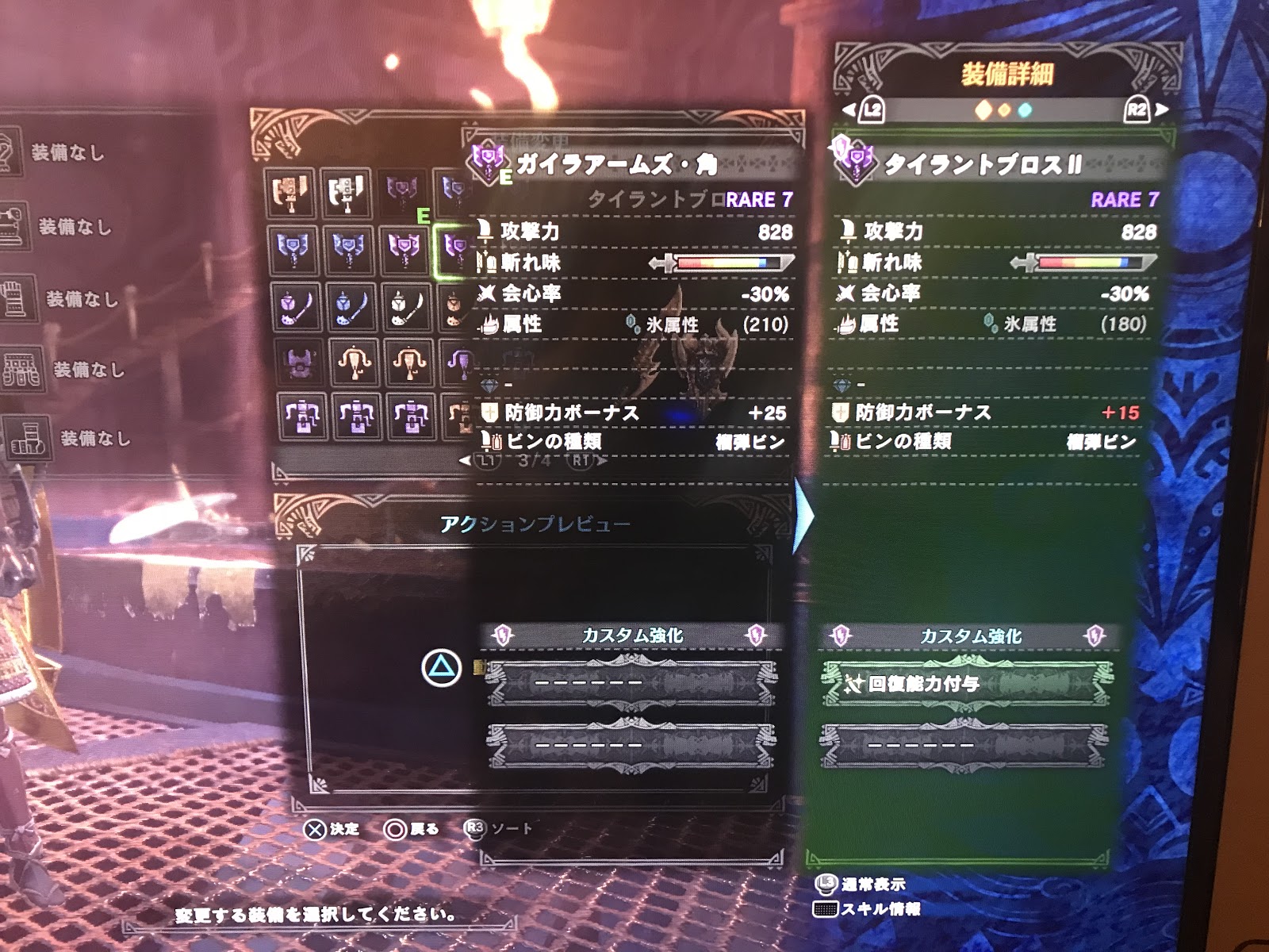 我們再來看看角龍盾斧,兩把R7得對比。有強化嗎?有。但用起來有區別嗎?(更帥了,還多了10點防禦)沒有。