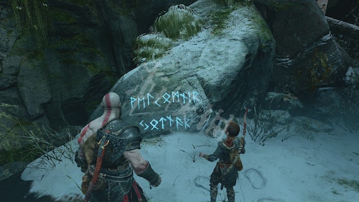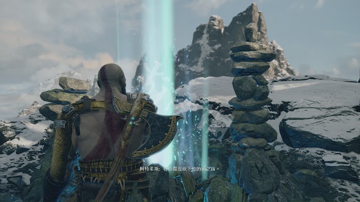 解決完後在邊上可以找到一個卷軸,讓阿特柔斯解讀,可以解鎖新的傳說日誌。在盡頭處有第二個巨人神壇[赫朗格尼爾],[赫朗格尼爾]是北歐神話中的霜巨人,這裡講述的是[赫朗格尼爾]和雷神[托爾]決鬥的故事。
