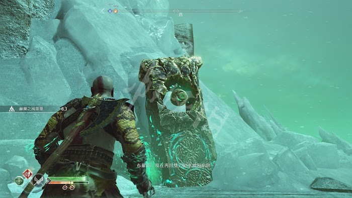 找到躲在石頭後面的布羅克,可以學會新的解謎技能[赫而之風],將混沌雙刃投擲到捕風陷阱裡收回,會有10秒的持續時間,在持續時間內將混沌之刃在投擲到其他的捕風陷阱中就可以將赫而之風轉移過去。