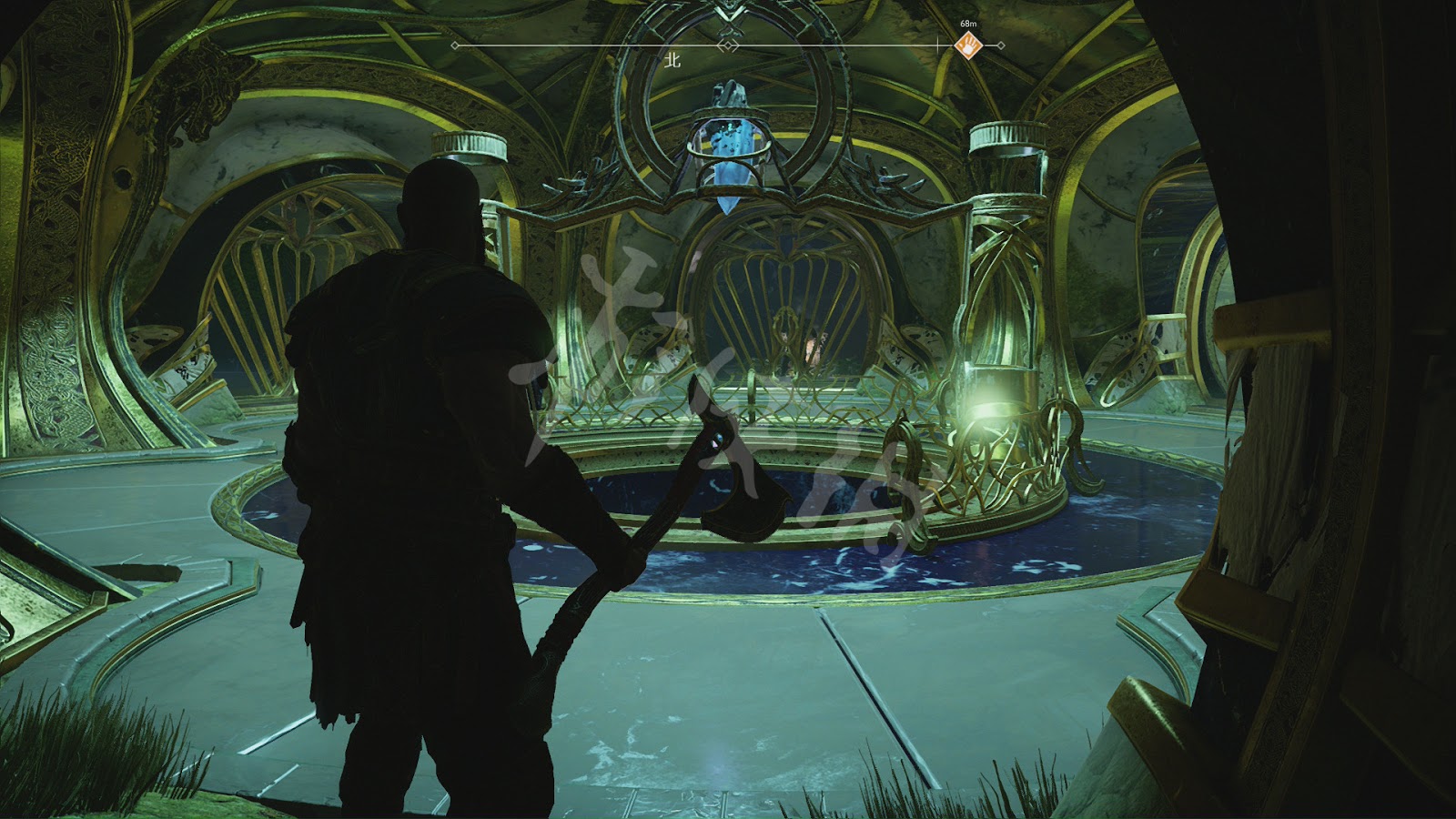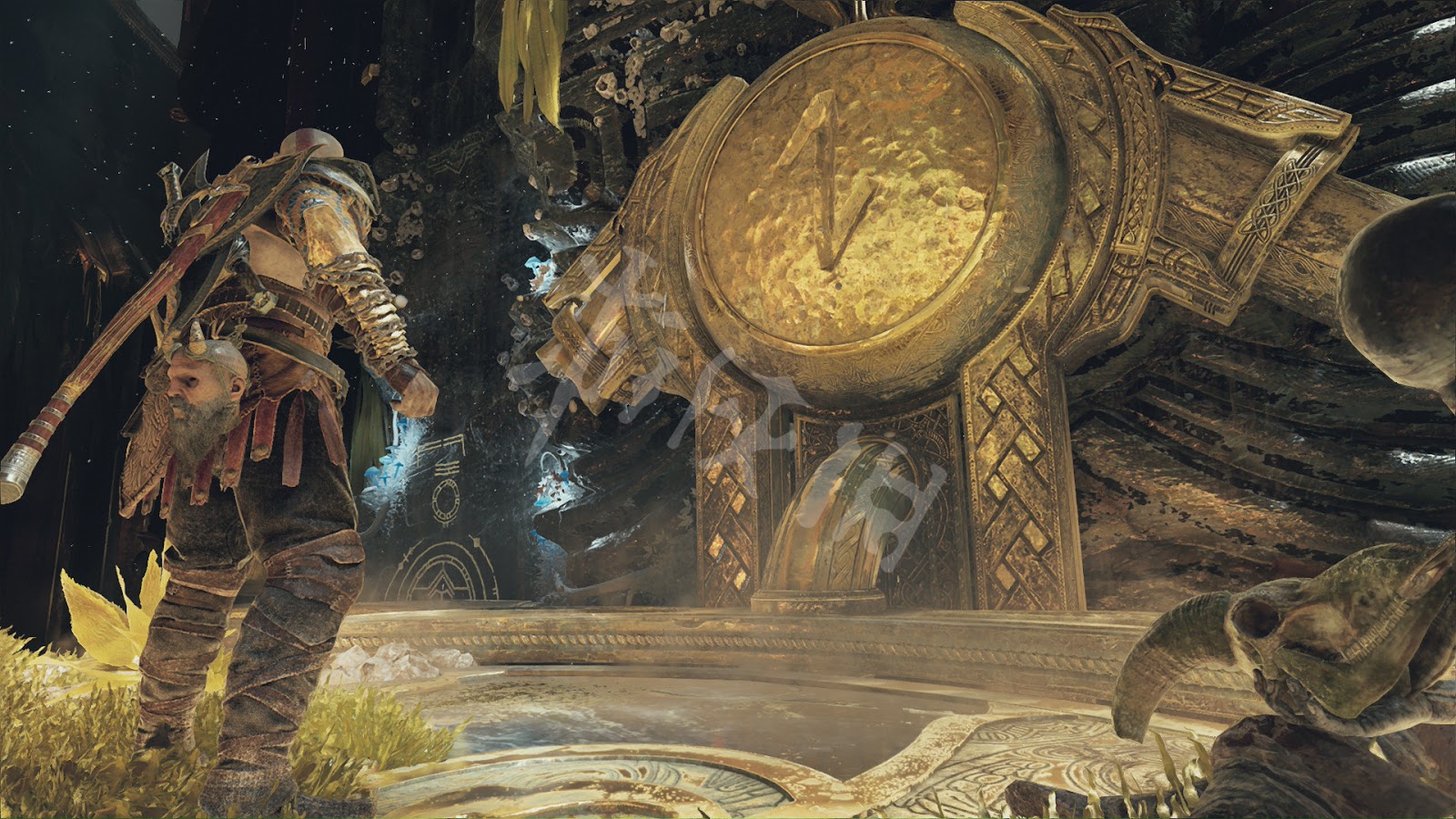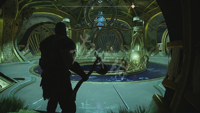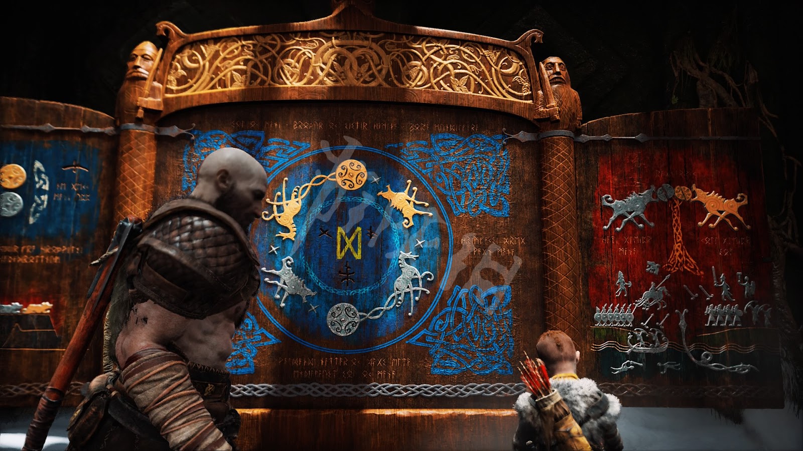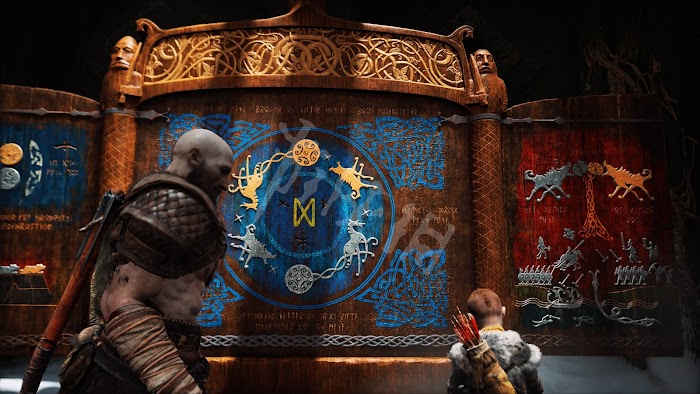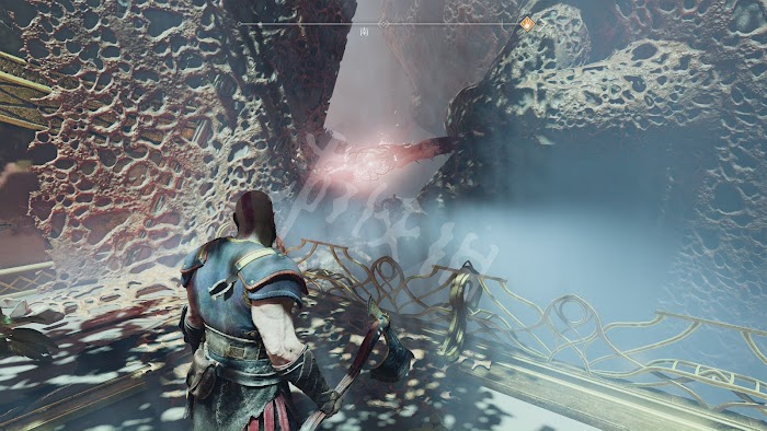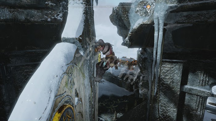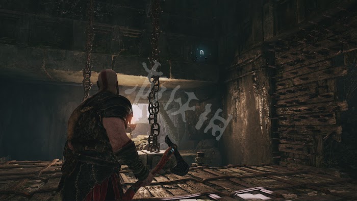來到提爾大廳,奎托斯搬開帶有約頓海姆符文的巨石門,發現底下兩邊都被鐵鍊鎖住。