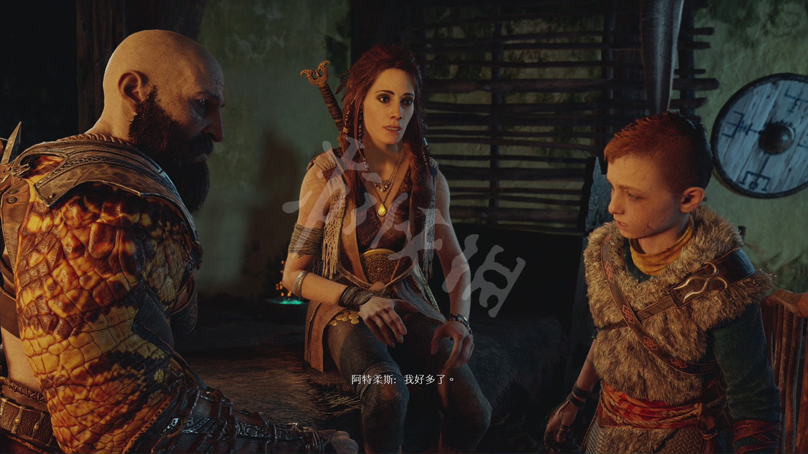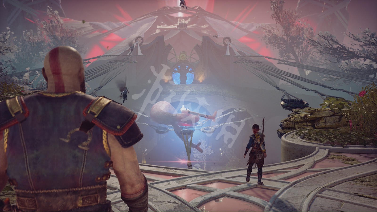來到山頂後,阿特柔斯指出他們生活的森林一直被一圈防禦咒術所環繞,但現在其中一處斷掉了,而斷掉的那一處的樹木,正是之前奎托斯為了火化妻子的遺體而砍伐。奎托斯表示這些被砍掉的樹木都是妻子生前標記好的,他也是根據妻子的指示行事。