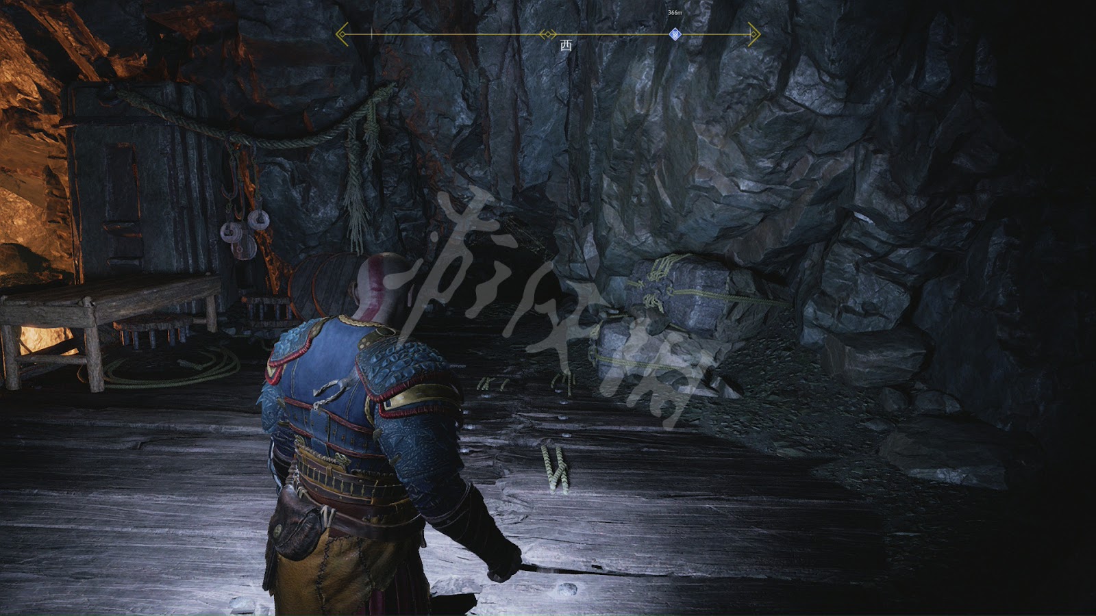 穿過吊橋,撿掉邊上的寶箱,獲得鍛造用的[斯瓦塔而夫海姆軟鋼]。打開一道鐵門這裡埋伏著幾個人類強盜。與之前遇到的怪物相比,人類在奎爺面前毫無任何威脅可言,一刀一個小朋友。解決掉後,高臺上會出現3個遠端攻擊的暗影戰士,投擲斧頭擊殺。